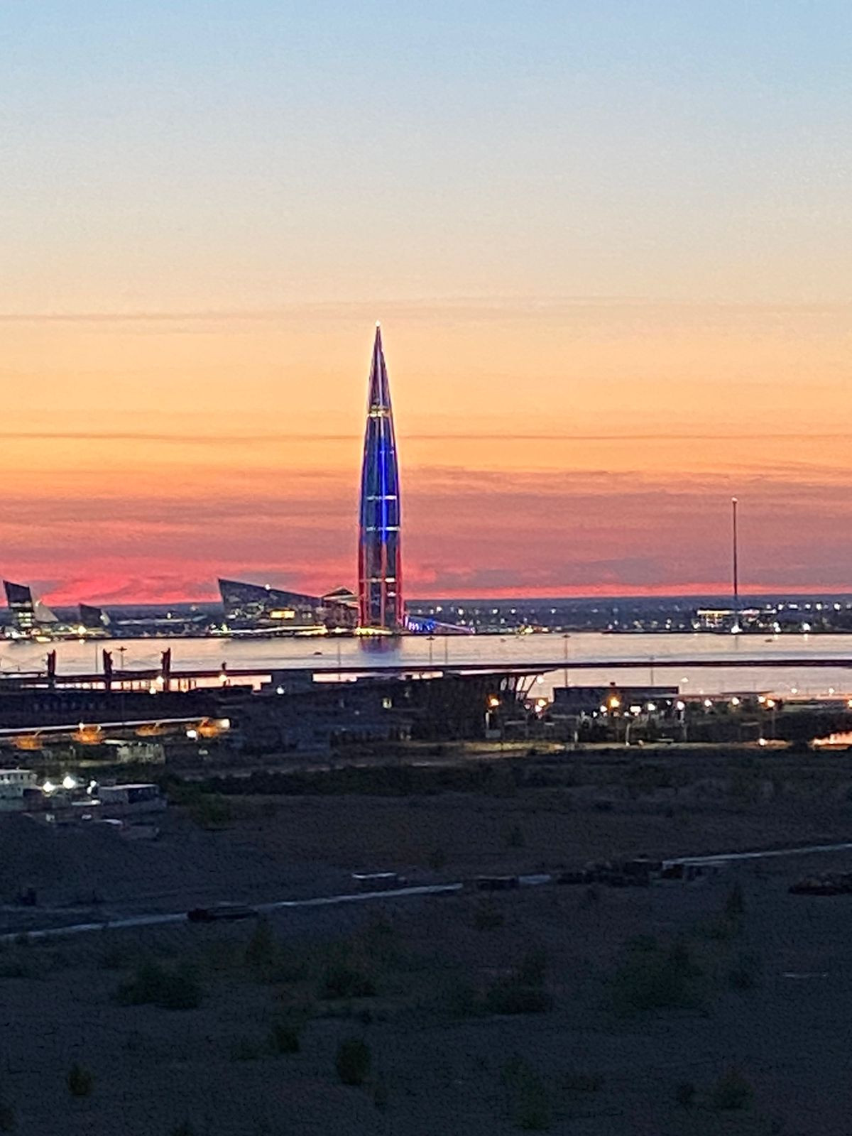 Отличные видовые характеристики - из окон открывается прекрасный вид, все сказочные закаты Питера - ваши! Из окон видно Лахтацентр, Газпром Арену и Исаакий.