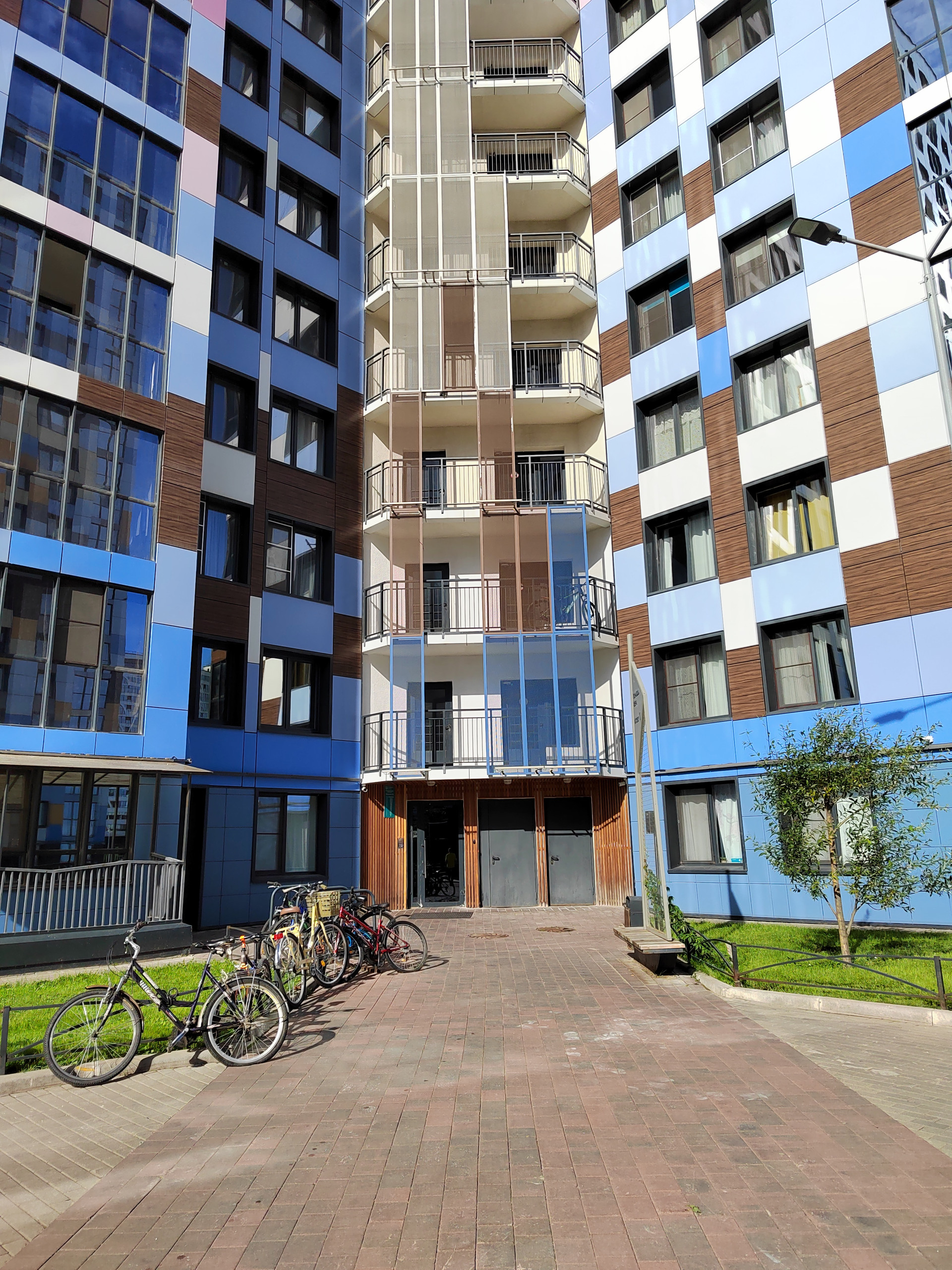 Закрытый двор с мягким покрытием, бассейном, скандинавскими площадками, качелями и гамаками. По двору ездит электрокар, который по звонку довезет вас до парадной абсолютно бесплатно.