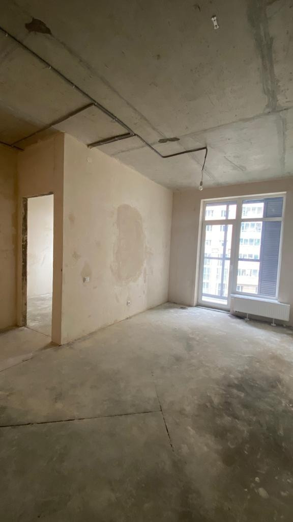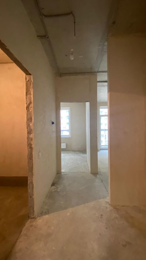 Квартира находится на 6 этаже. Выполнены все самые шумные и грязные работы предчистовой отделки: стяжка пола, стены выровнены под маяк,  произведена разводка электричества и отопления. Высота потолков 2.9 метра. Оконные проёмы квартиры увеличены. Благодаря этому в квартире много света. Большая лоджия с панорамным и окнами и видом на реку Смоленка.