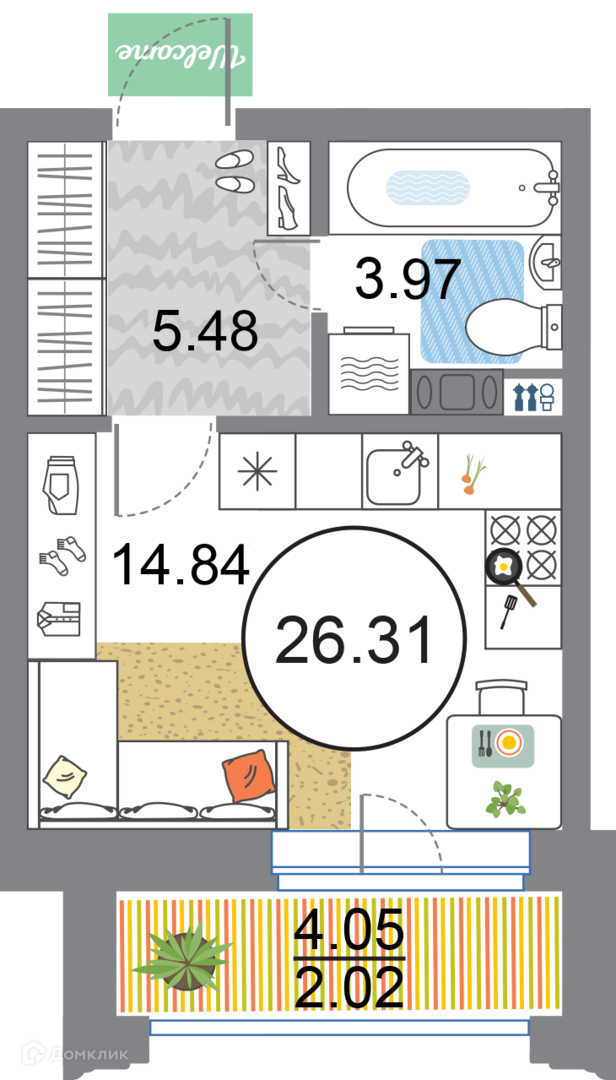 Общая площадь 26.3 м2
