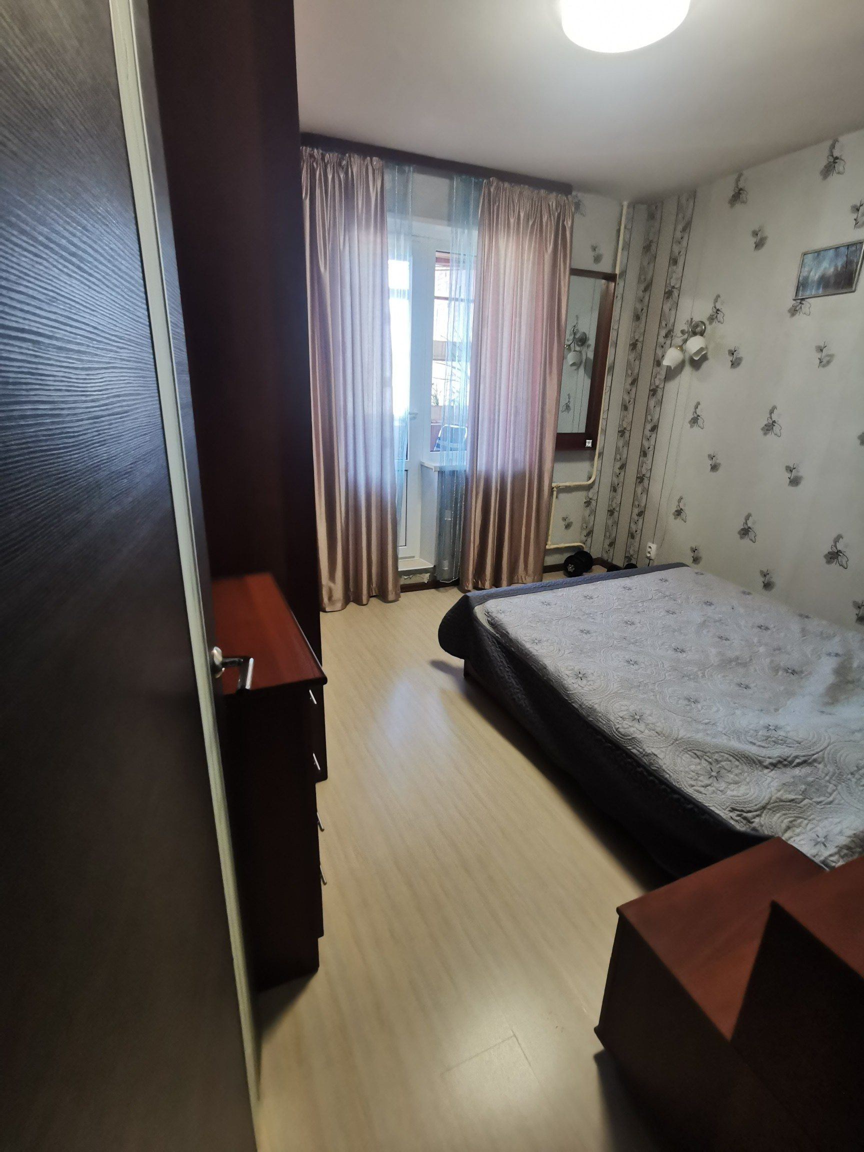 Уютная трехкомнатная квартира в спальном районе с раздельными изолированными комнатами: большой спальней, коридором,  раздельным сан узлом и рабочим кабинетом.