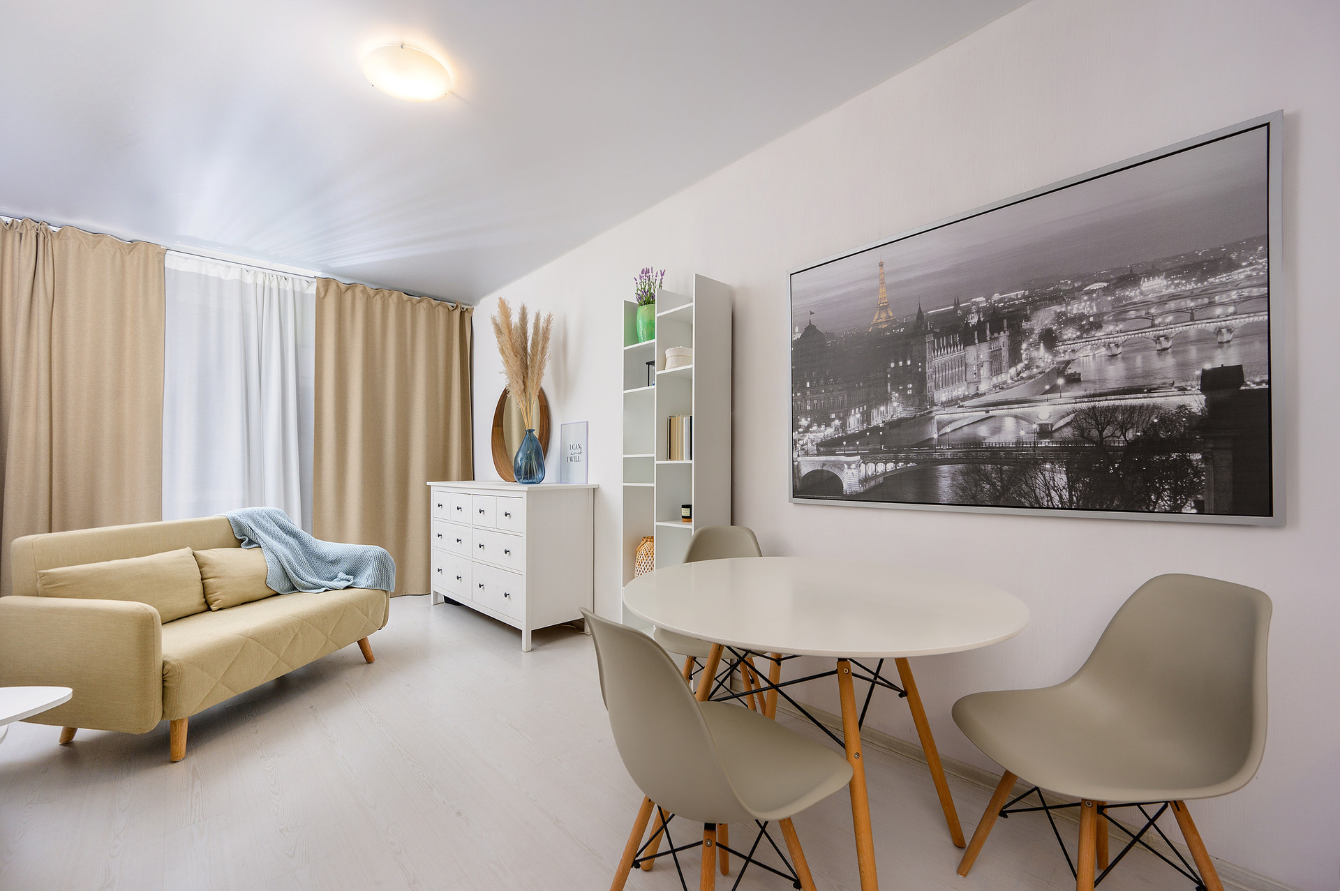 Квартира с видом на финский залив расположена на 5 этаже здания и представляет собой кухню - гостиную с выходом на лоджию, а также спальню.