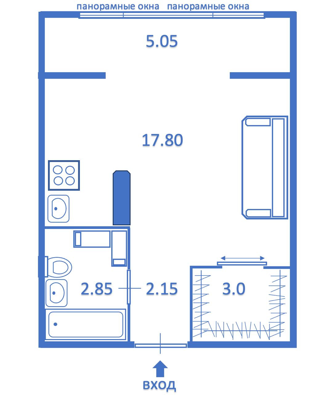 Общая площадь 25.8 м2