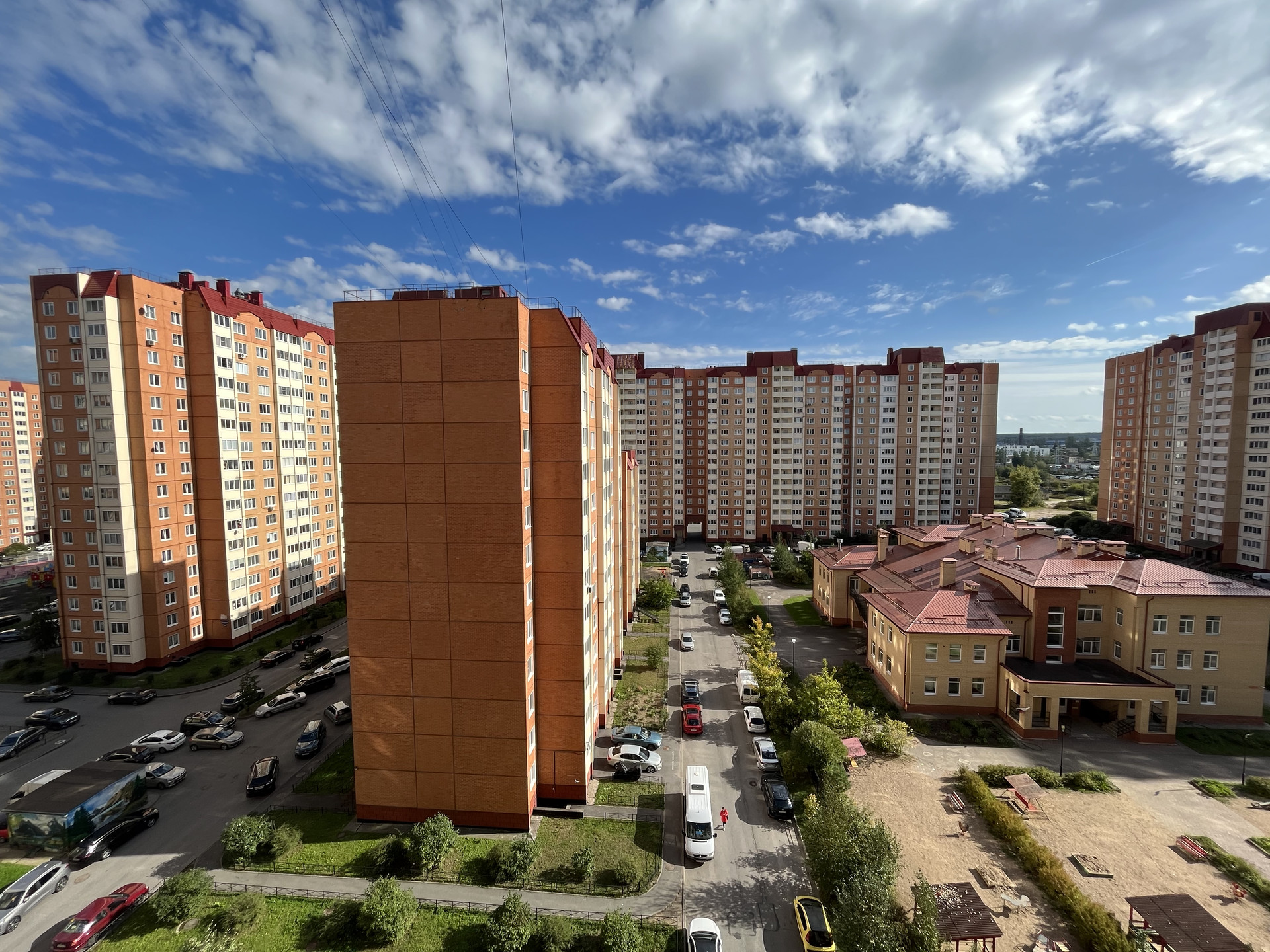 Развитая  инфраструктура, удобный выезд на КАД. В пешей доступности ТЦ и продуктовый магазин.