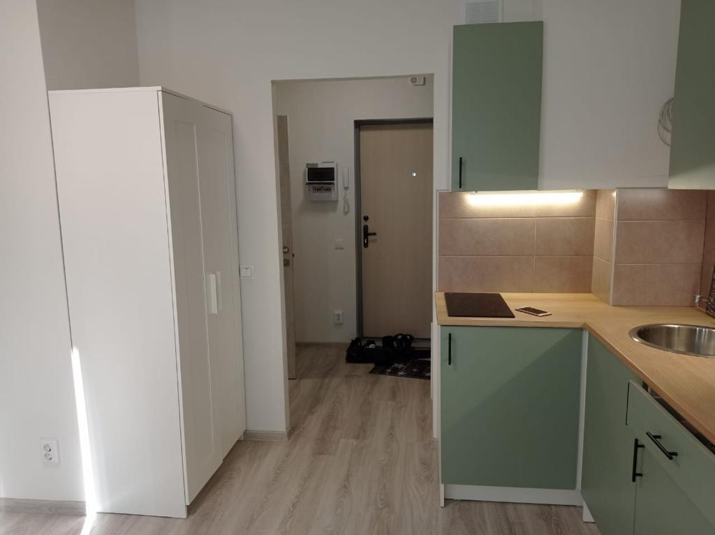 Квартира находится на десятом этаже девятнадцати этажного дома. Сделан качественный ремонт: стены выровнены под ноль, обои под покраску, плитка в санузле.  Общая площадь квартиры 26,1 кв.м., комната 17,2 кв.м