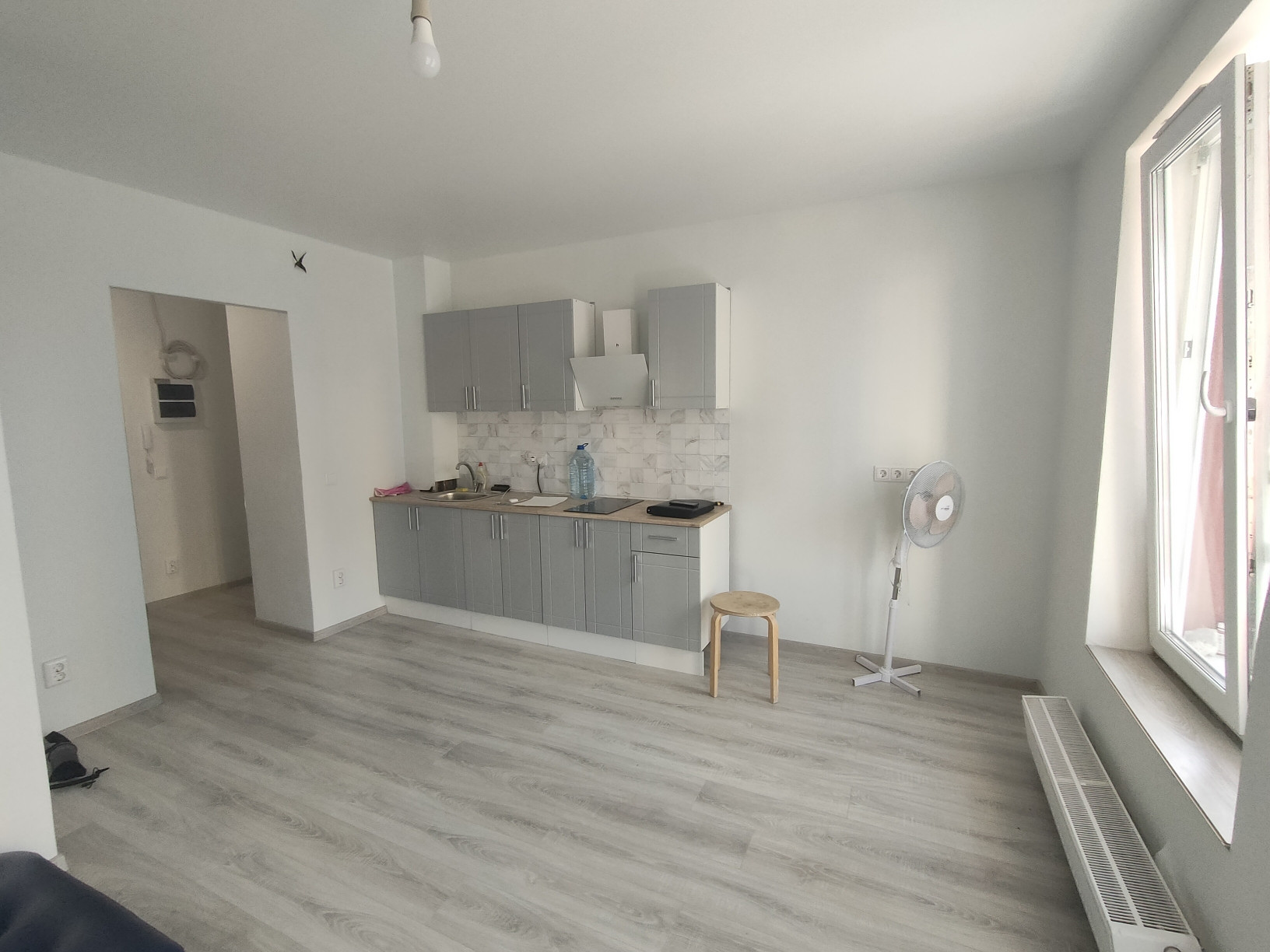 Квартира находится на третьем этаже девятнадцати этажного дома. Сделан качественный ремонт: стены выровнены под ноль, обои под покраску, плитка в санузле. Общая площадь квартиры 25,1 кв.м., комната 16 кв.м