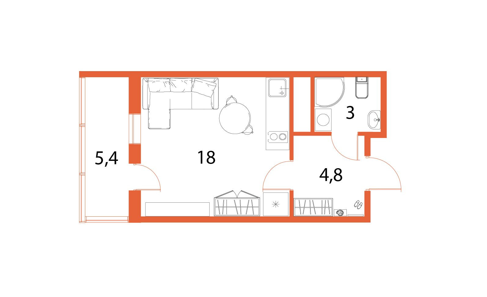 Общая площадь 25.7 м2