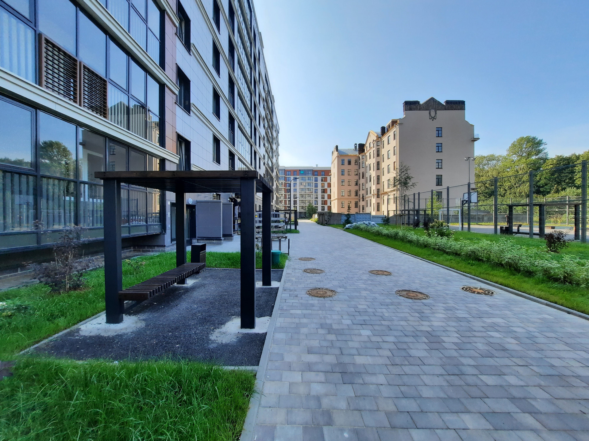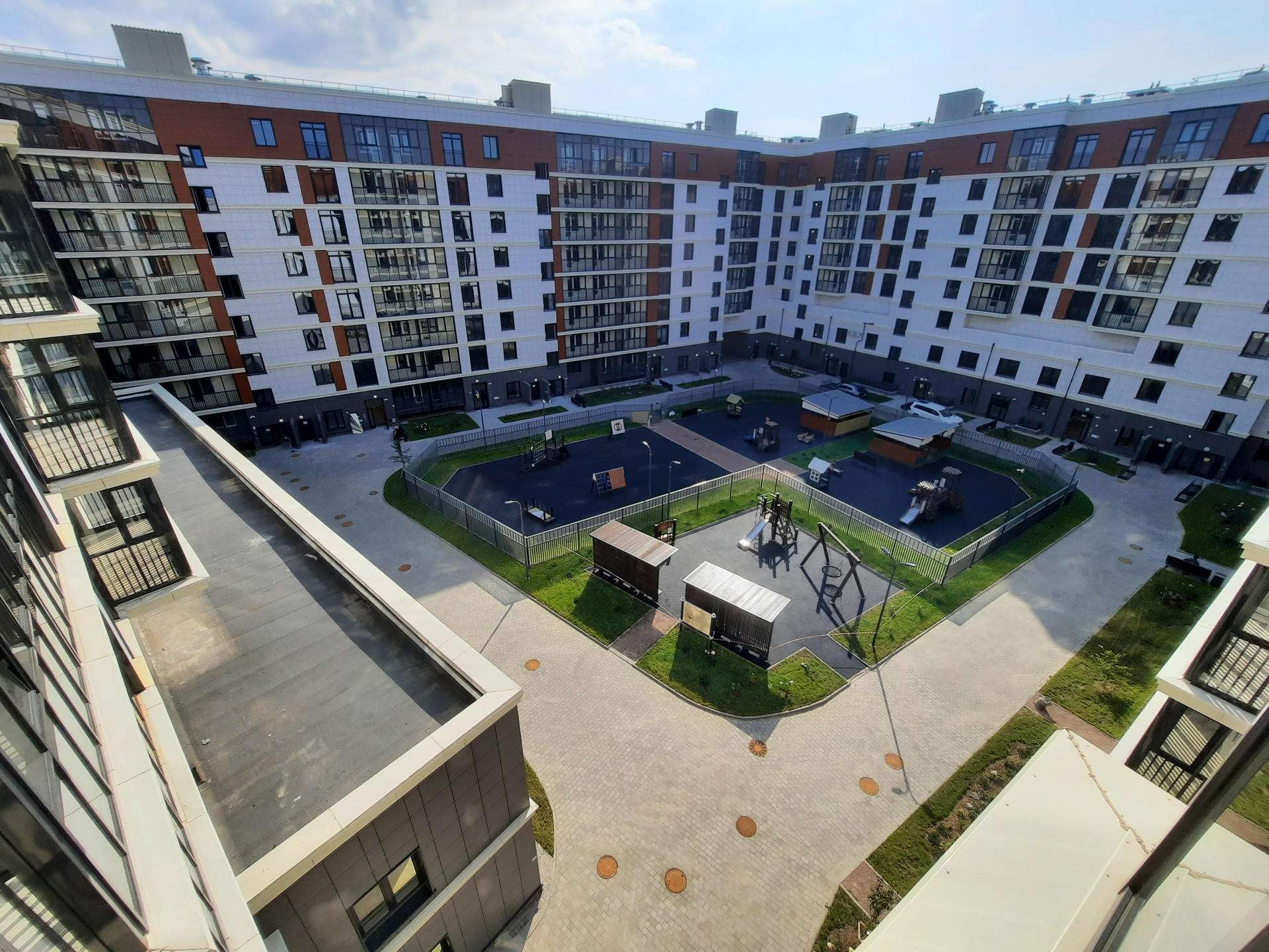 Закрытая охраняемая территория с видео наблюдением. Прогулочные зоны и места для отдыха, собственная спортивная площадка.