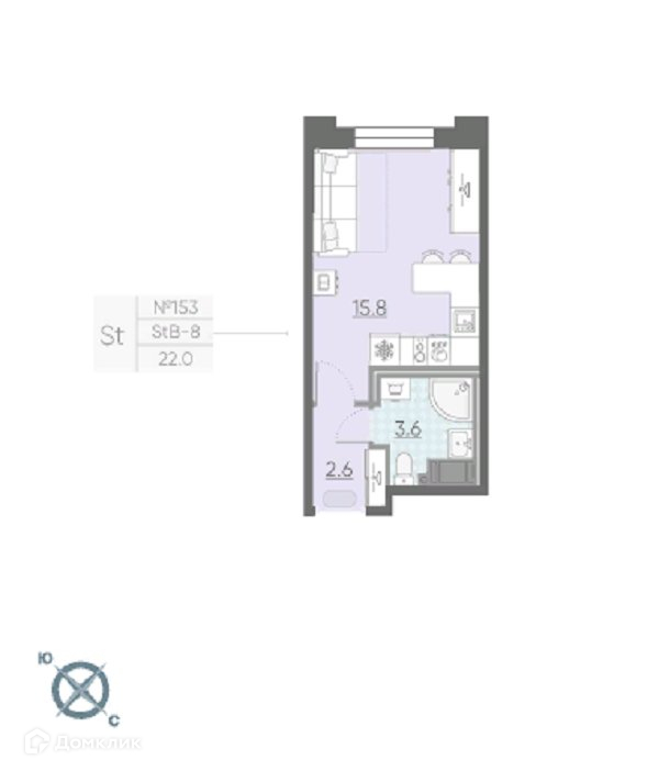 Общая площадь 22 м2