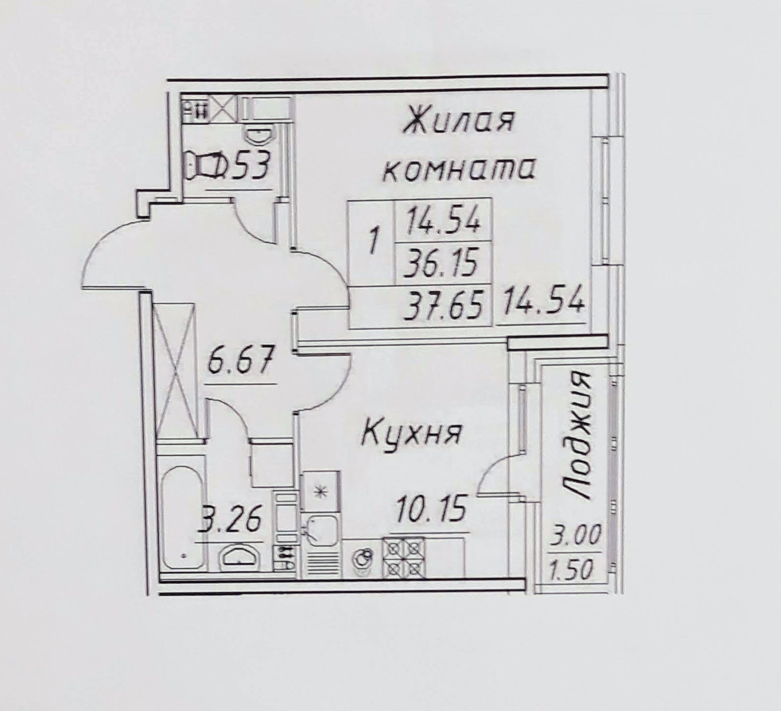 Общая площадь 36.15 м2