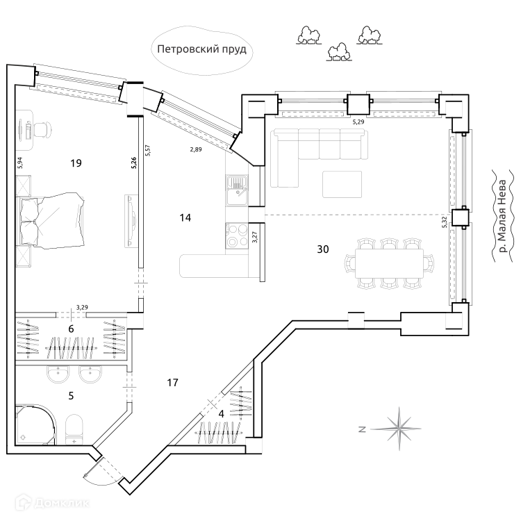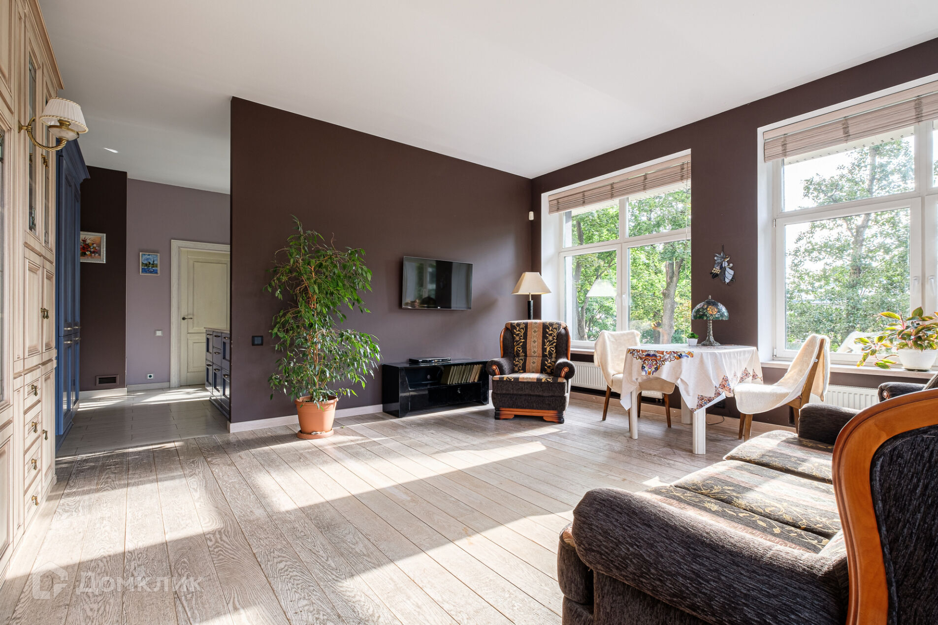 Квартира с великолепным видом на зелень. Редкая, просторная и удобная планировка! Большая гостиная 30 метров с 4 большими окнами и потрясающим видом на зелень обращена на юго-восток.  Это пространство всегда будет наполнено воздухом и светом! Окна выполнены из натурального дерева. Здесь легко можно организовать зону для работы, либо разделить большое пространство на две отдельные комнаты по 15 квадратных метров.