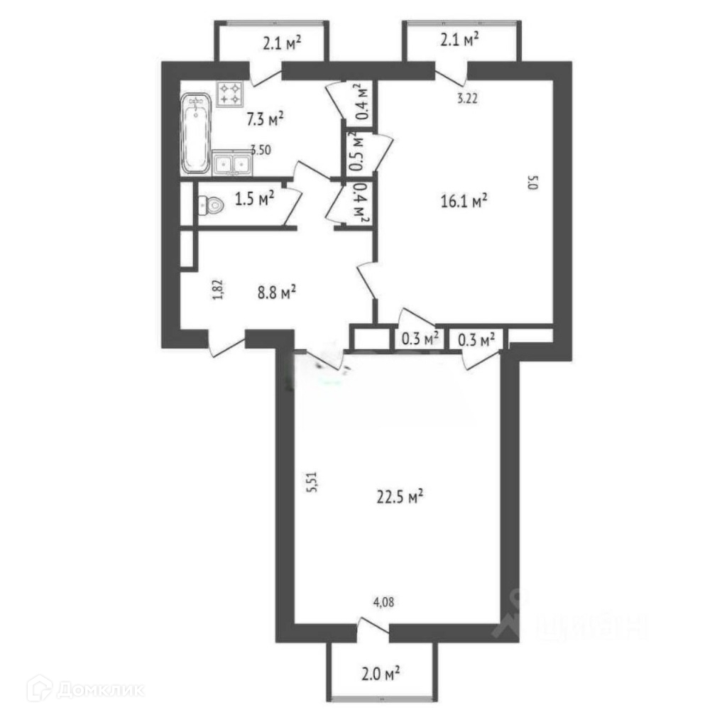 Общая площадь 58.1 м2