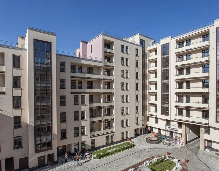 Внутренний двор с детской площадкой, дорожкой для бега и теннисным столом огорожен и находится под круглосуточным наблюдением.