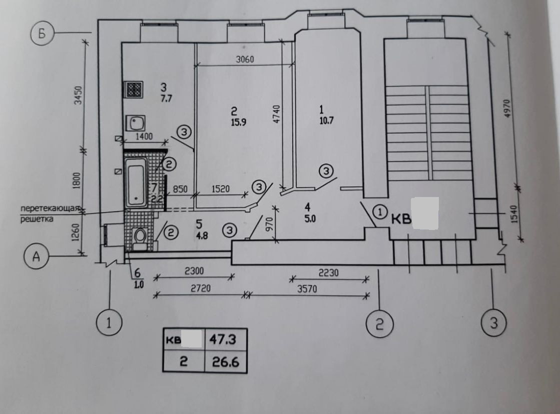 Общая площадь 47.3 м2