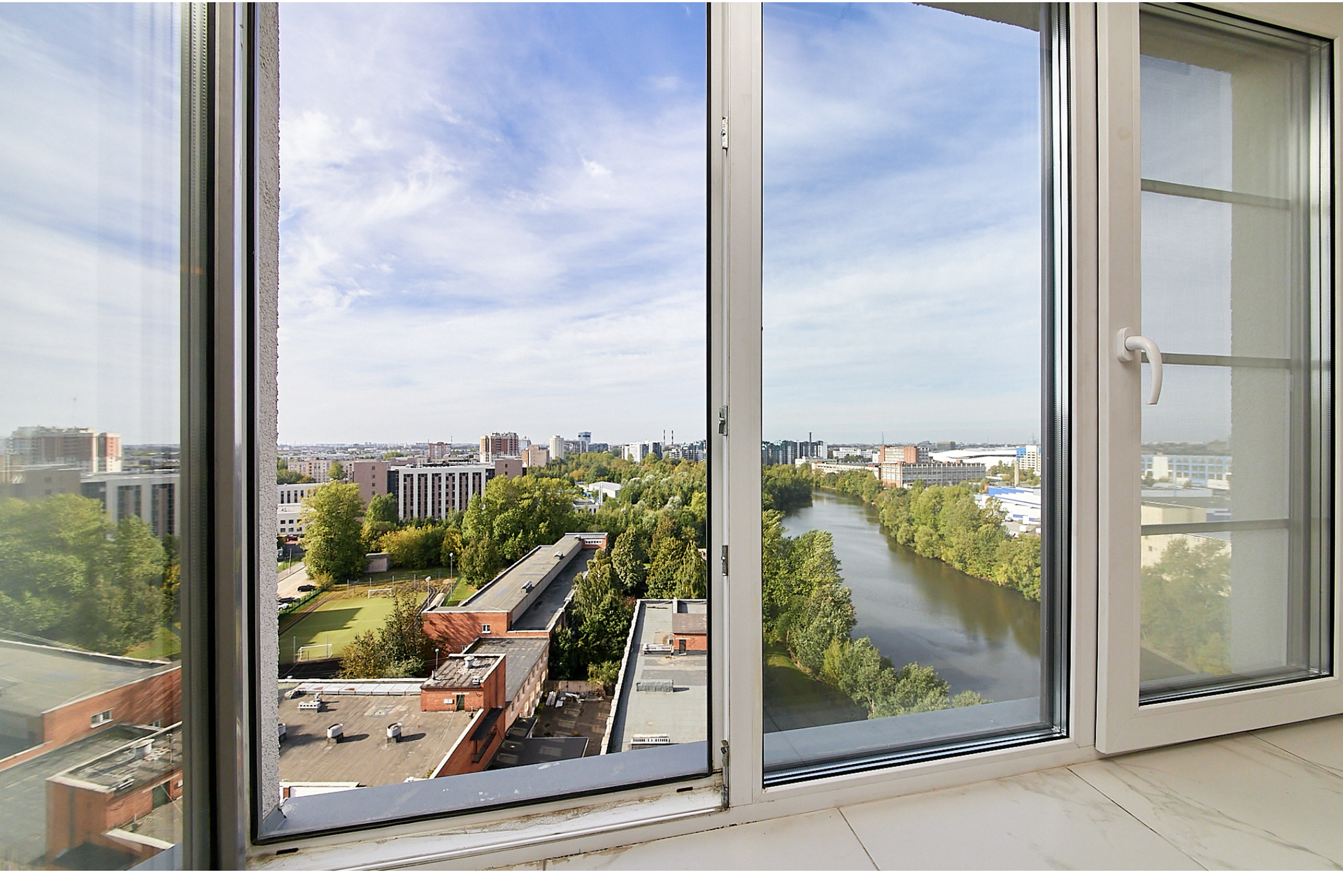 Окна квартиры выходят на 2 стороны, из одной комнаты открывается прекрасный вид на реку Оккервиль.