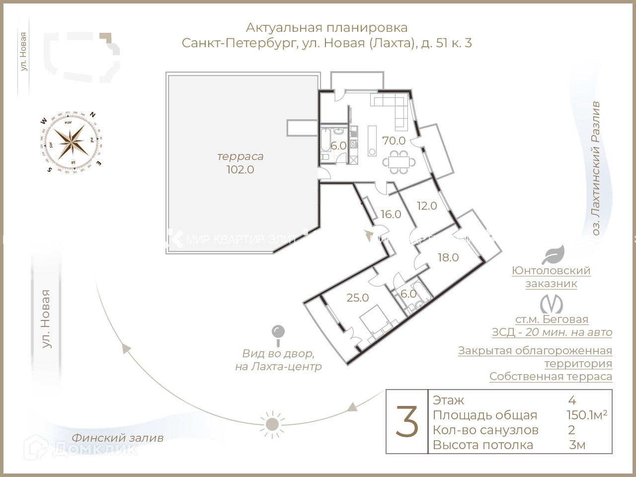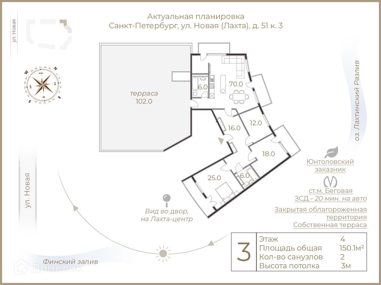Бонусом идет терраса в 102 кв.м., закатное солнце, природа и пение птиц.