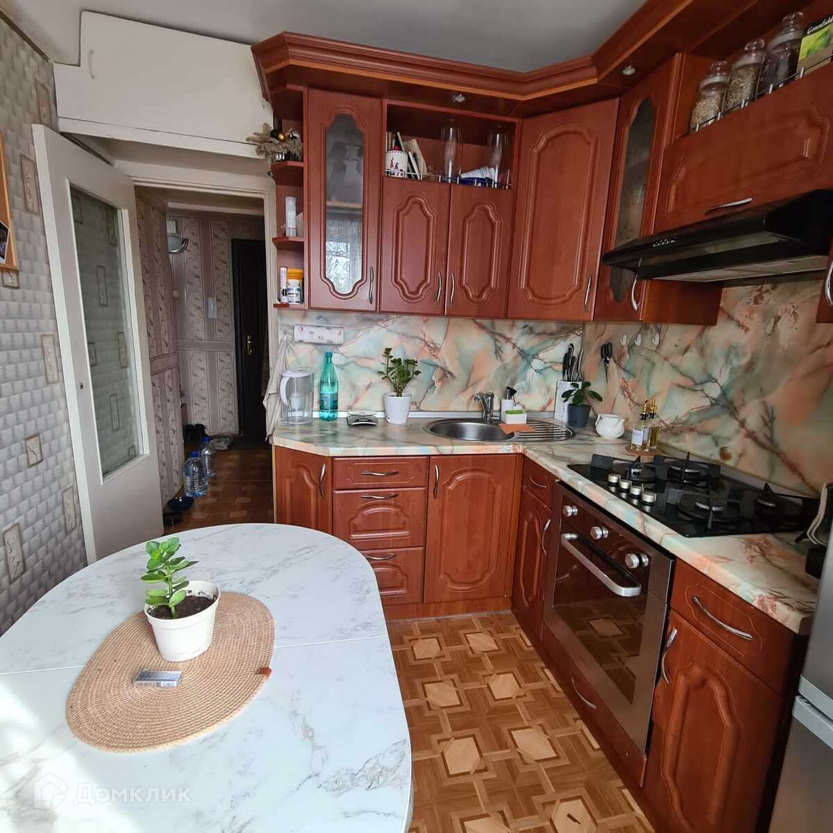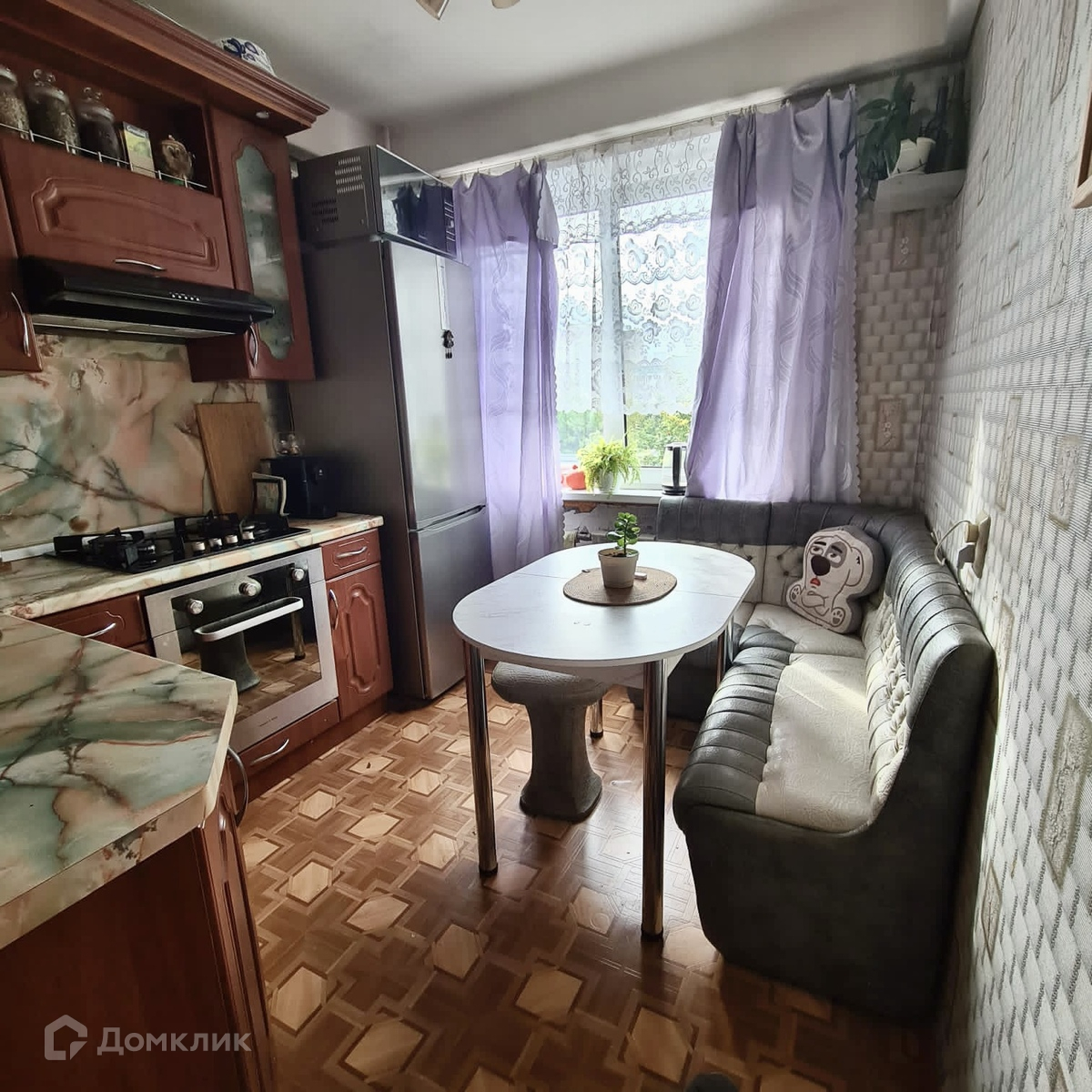 Квартира в хорошем состоянии.Сделан новый ремонт в комнатах.Везде установлены стеклопакеты.Новым хозяевам остается мебель на кухне и  кухонный гарнитур со встроенной плитой,вытяжкой,духовым шкафом. Стенка в комнате,шкаф в коридоре.Остальное все по договоренности.