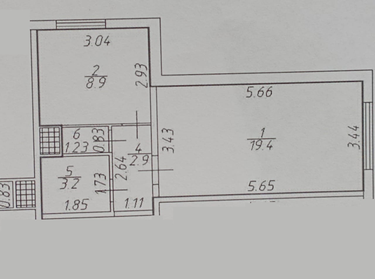 Жилая площадь 19.4 м2