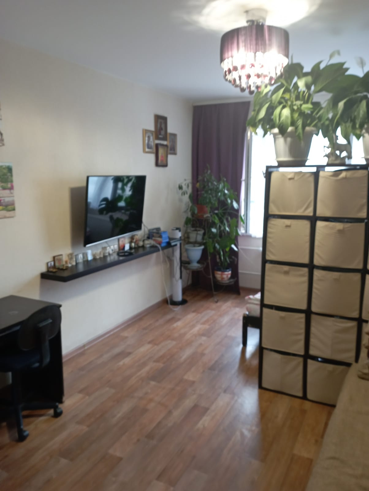 Комната 19,4м2 разделена на две зоны: Гостиную и спальню. Квартира светлая, теплая, уютная окна выходят во двор, много зелени и света. Высота потолков составляет 2,68 метра. Подземный паркинг.