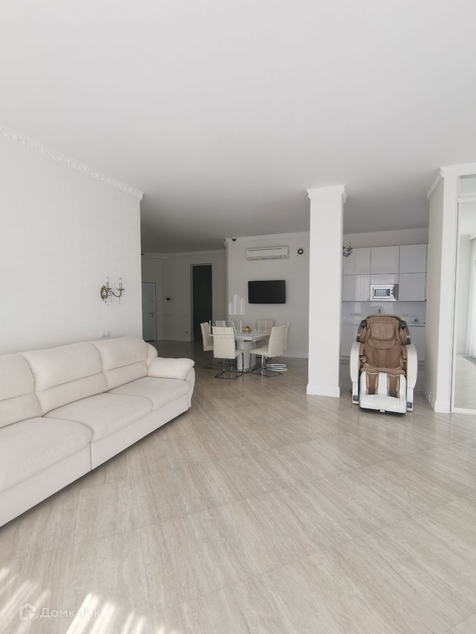 Высококачественная отделка в светлых тонах, пол из светлого керамогранита в один уровень, без порогов.