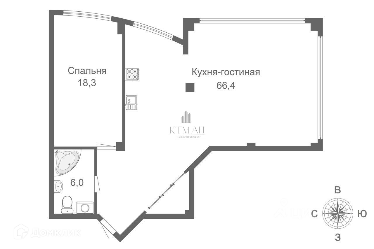 Потолки 3,25 м., панорамные окна, большая спальная комната, просторная гостиная-кухня, в ванной комнате установлена угловая двухместная гидромасажная ванна и телевизор.