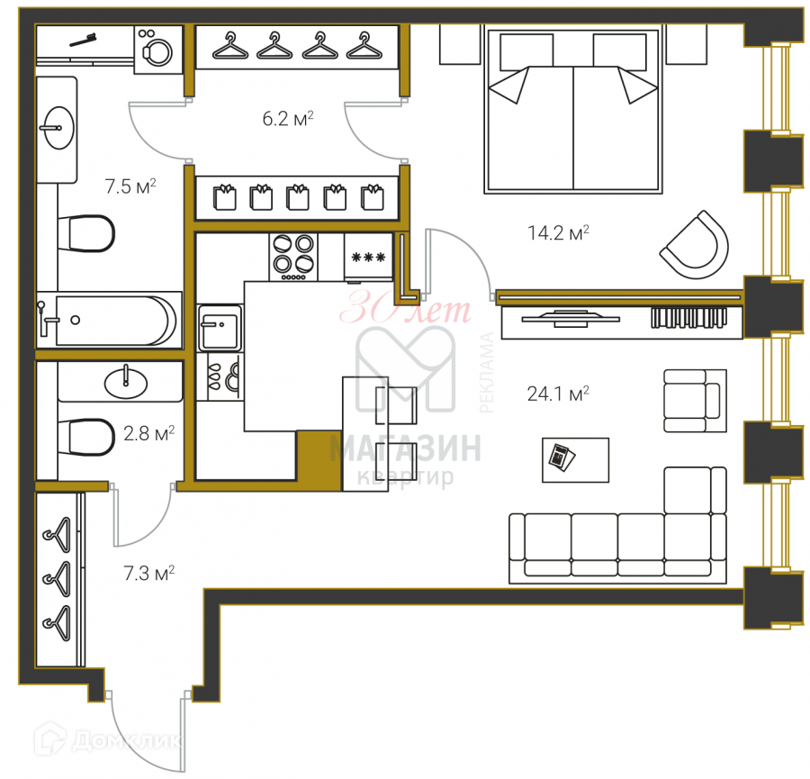 - Кухня-Гостиная - 29 м2