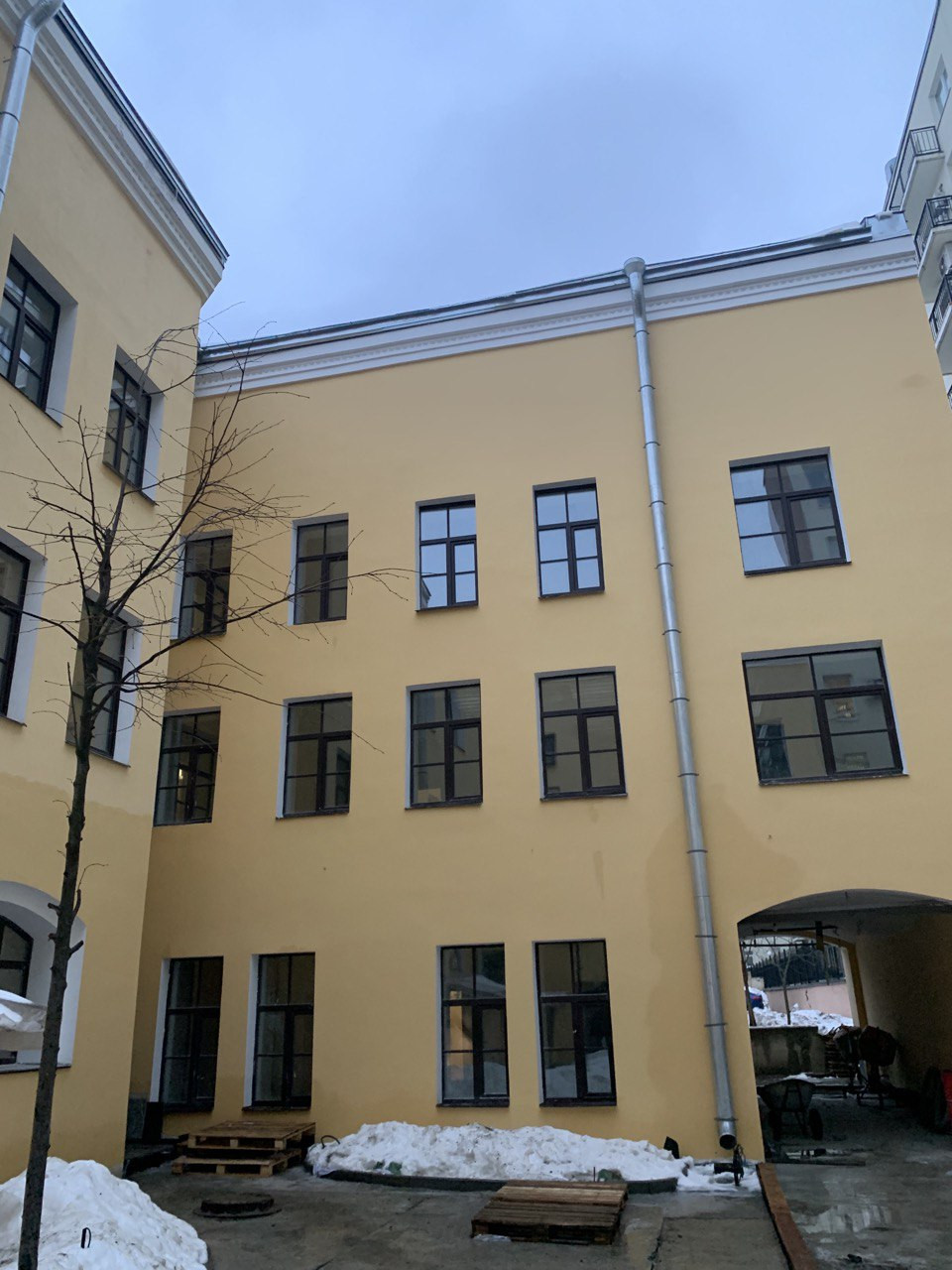 В 2021 году в здании начали проводить капитальный ремонт, вплоть до замены перекрытий. Провели центральное отопление и все необходимые удобства. Сейчас работы уже заканчивают, готовность объекта 90%. При этом начинать внутренний ремонт при покупке квартиры можно уже сейчас.