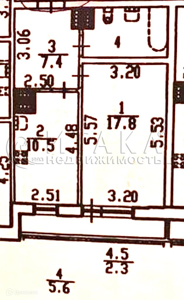 Жилая площадь 17.8 м2