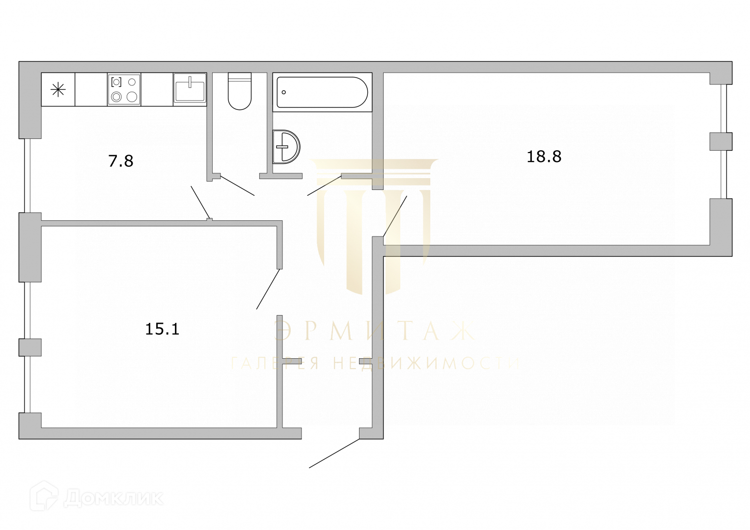 Жилая площадь 33.1 м2