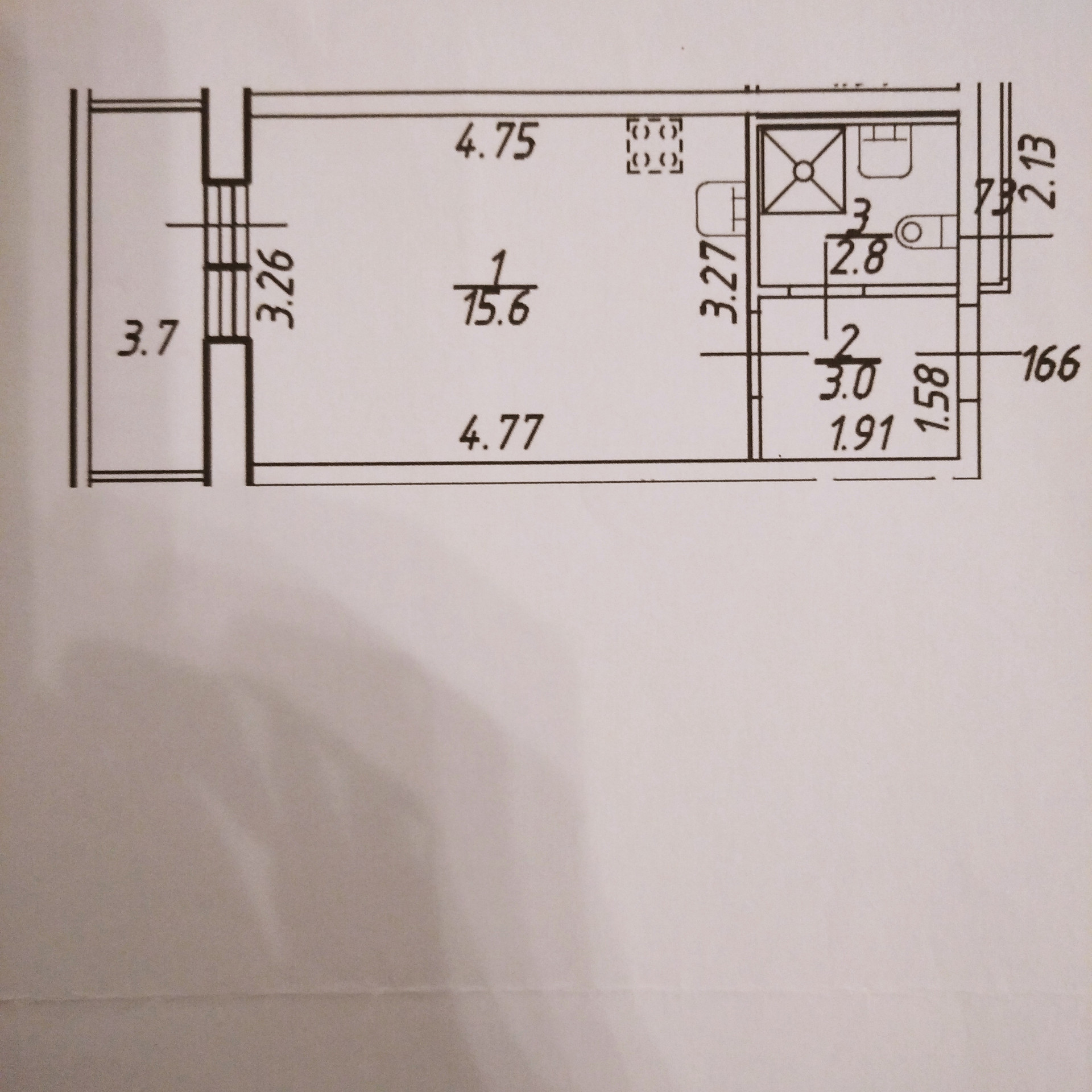 Жилая площадь 15.6 м2