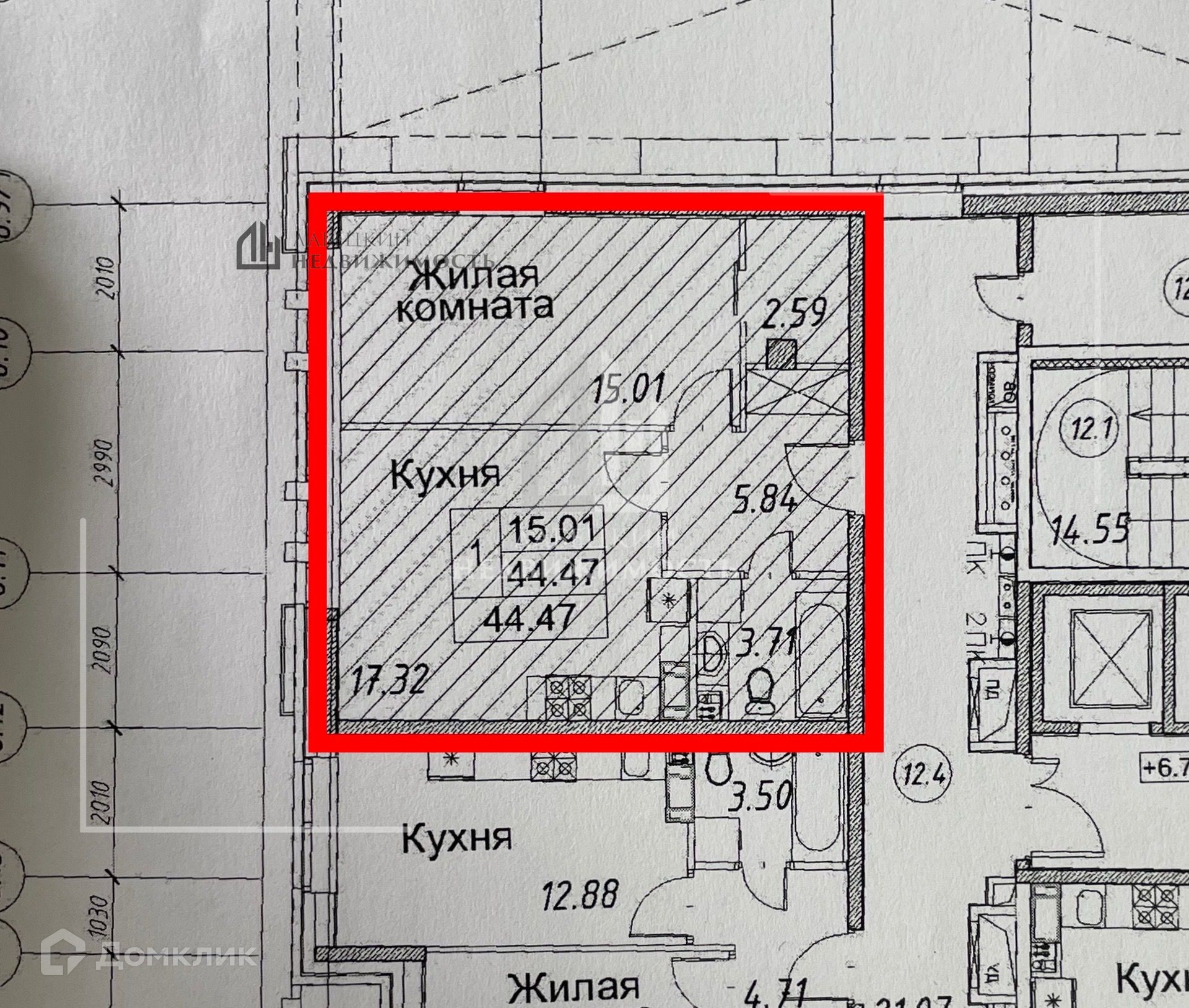 Общая площадь 44.5 м2