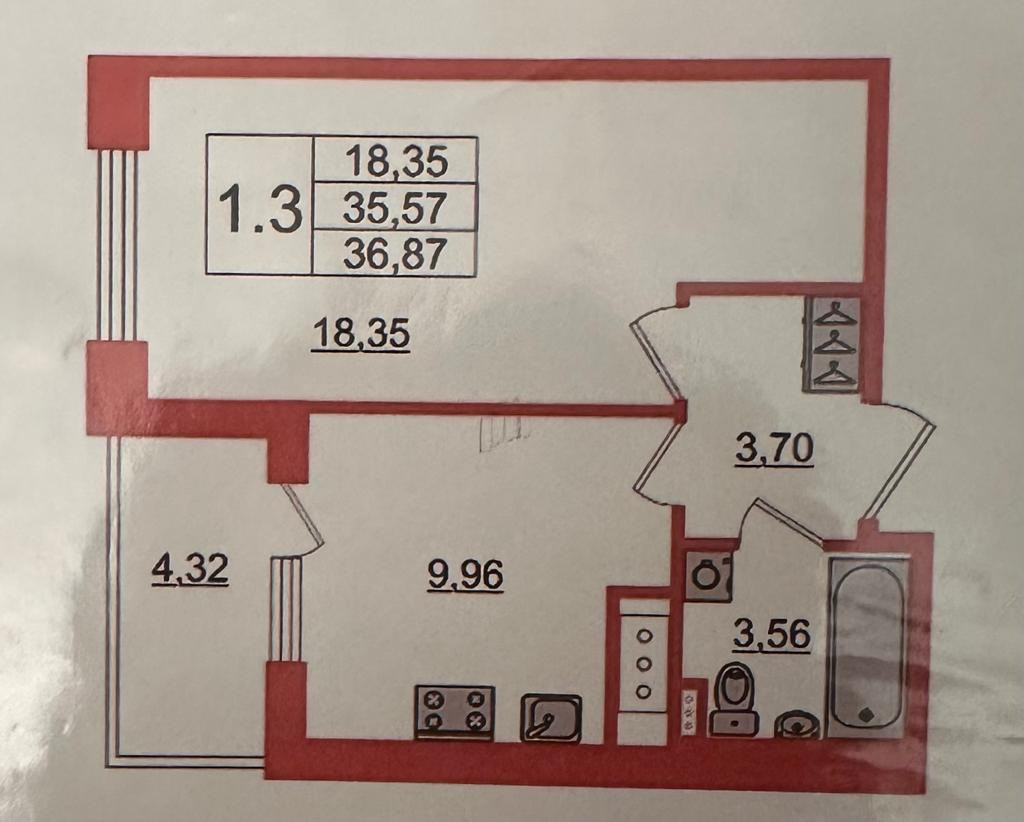 1-комнатная квартира, 35.71 м2, этаж 12 / 12, на продажу в Санкт-Петербурге, Торфяная дорога, 15к3