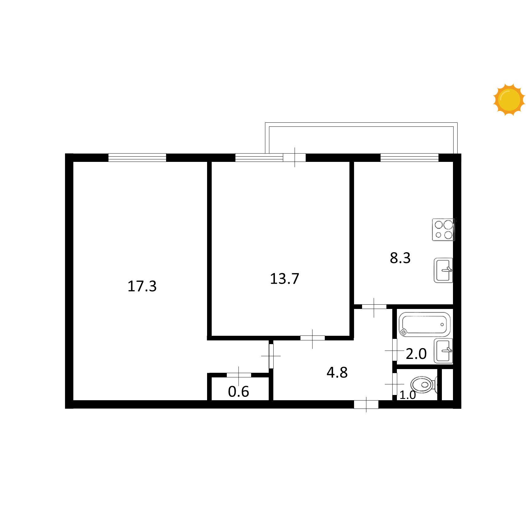 Балкон, лоджия 1 балкон