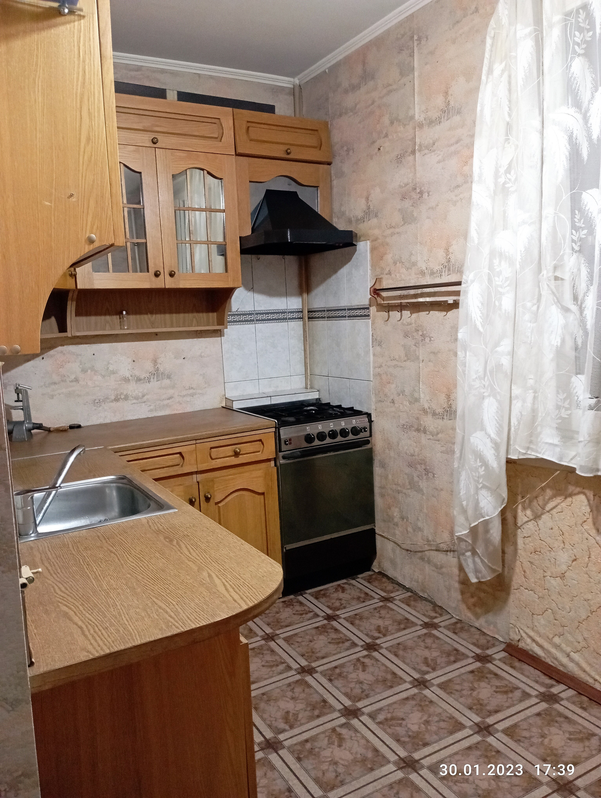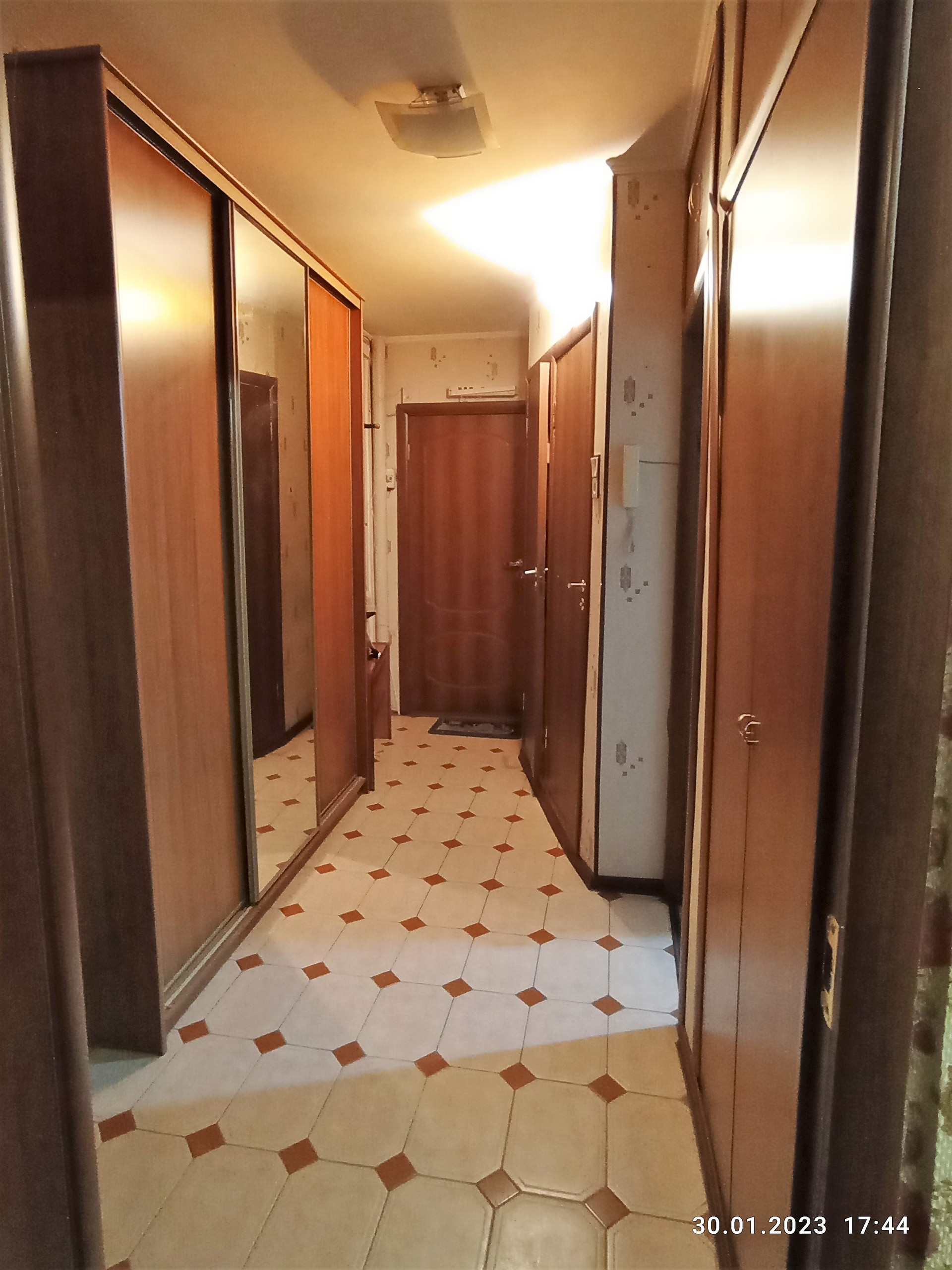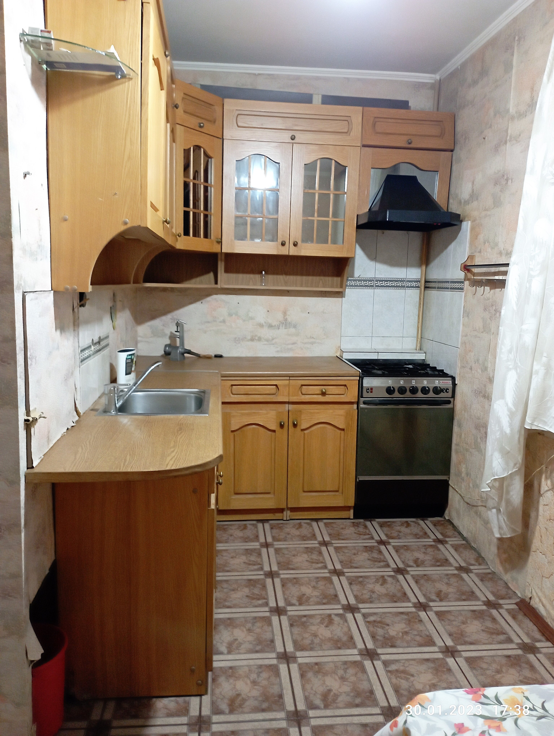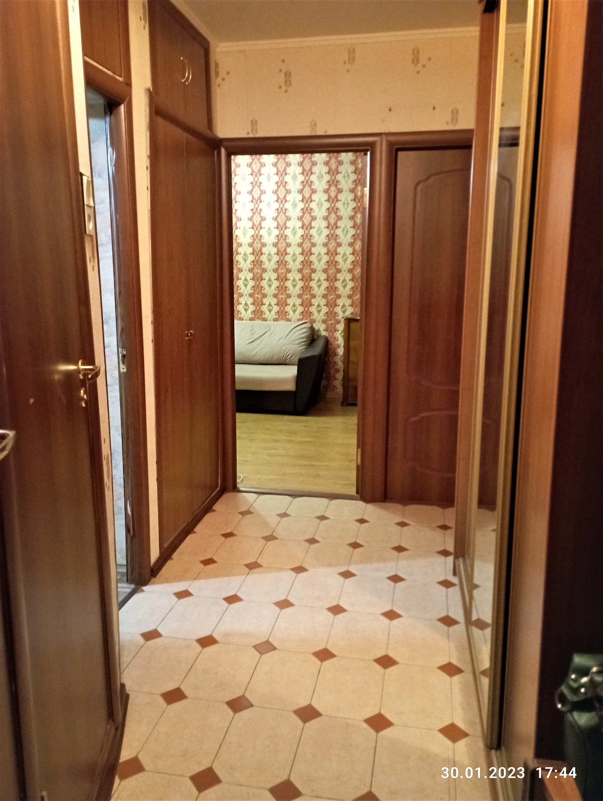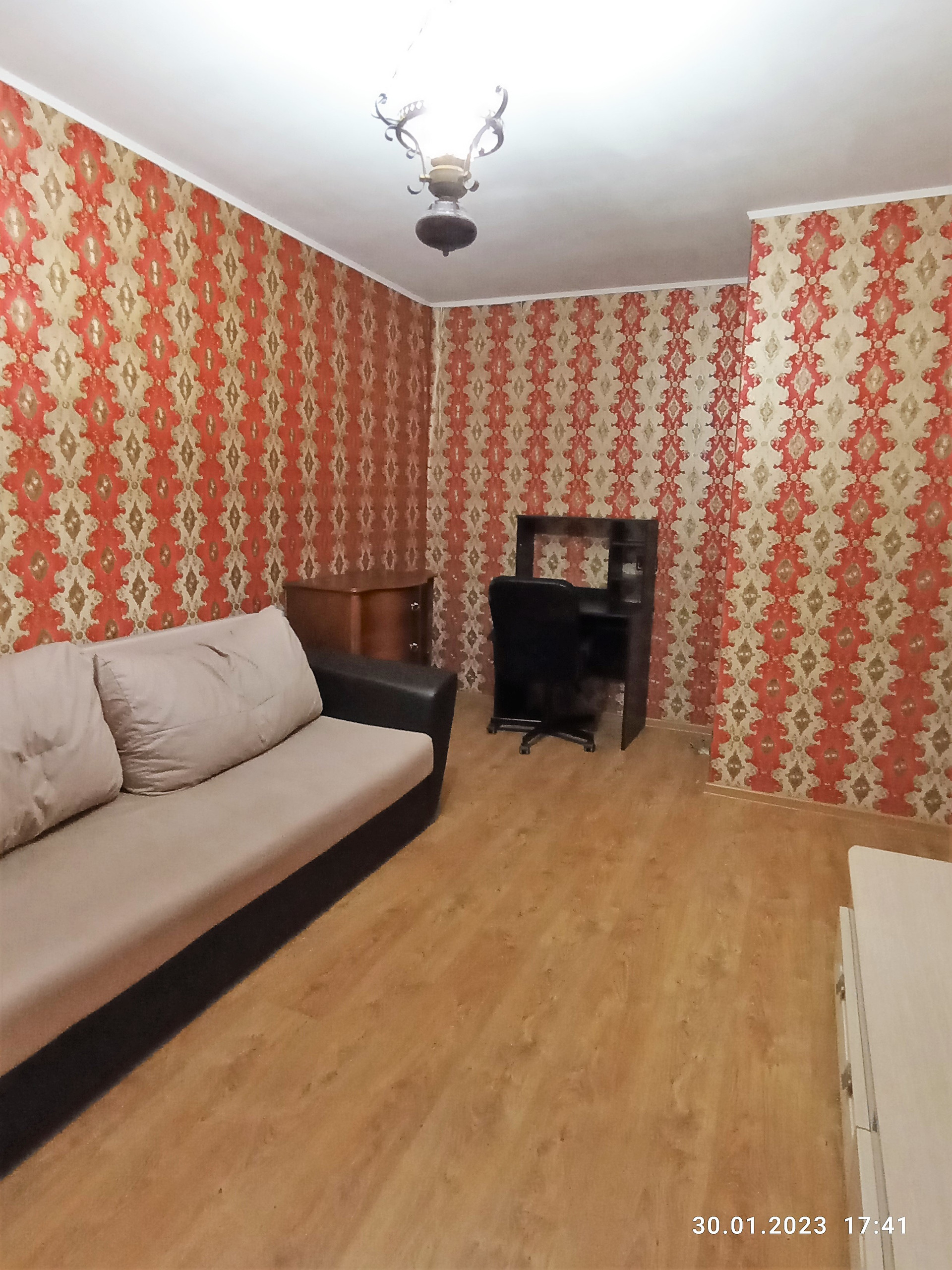 В кухне, прихожей и санузле на полу кафель, в комнатах-ламинат, балкона  нет, квартира в удовлетворительном состоянии.