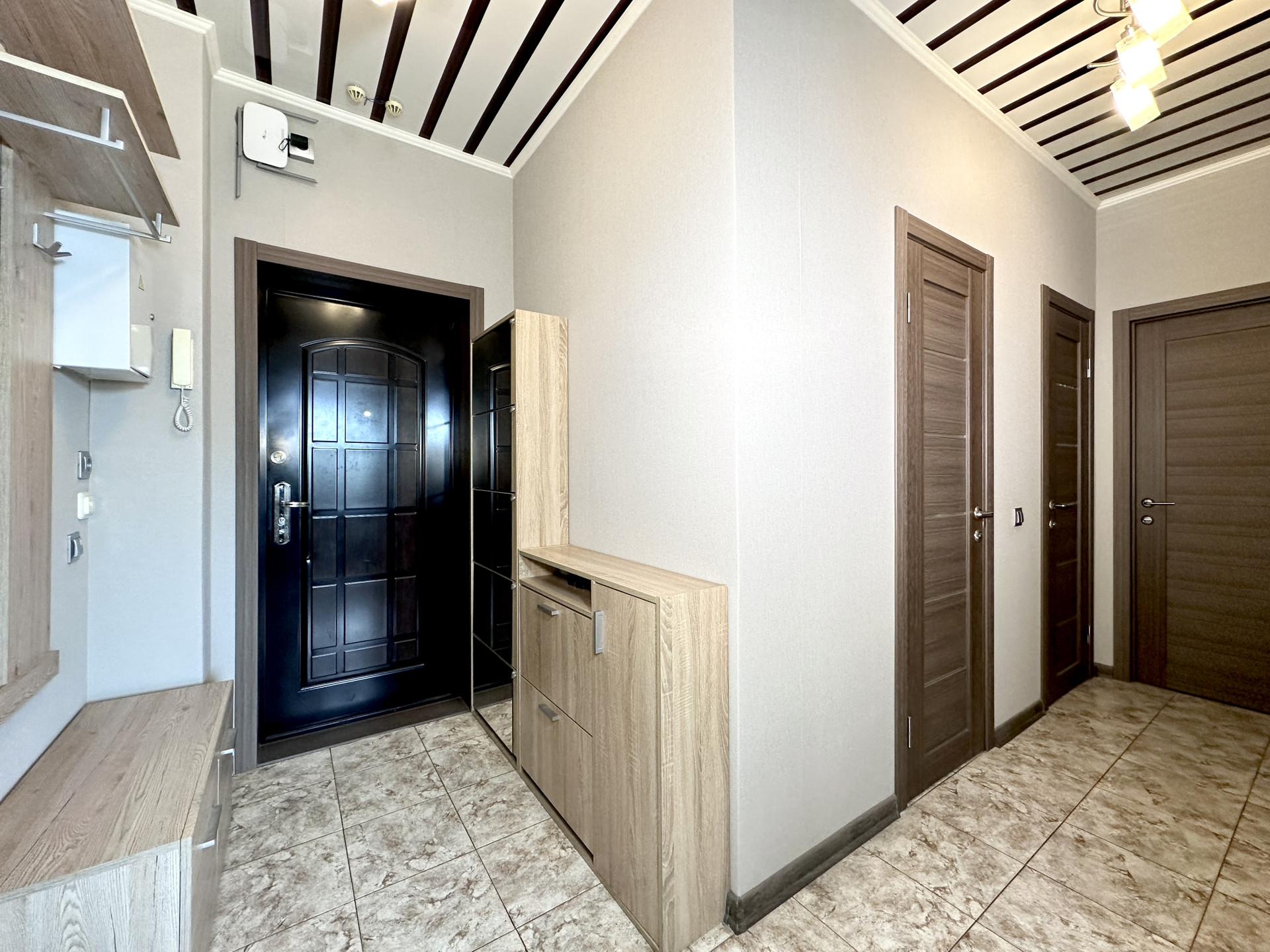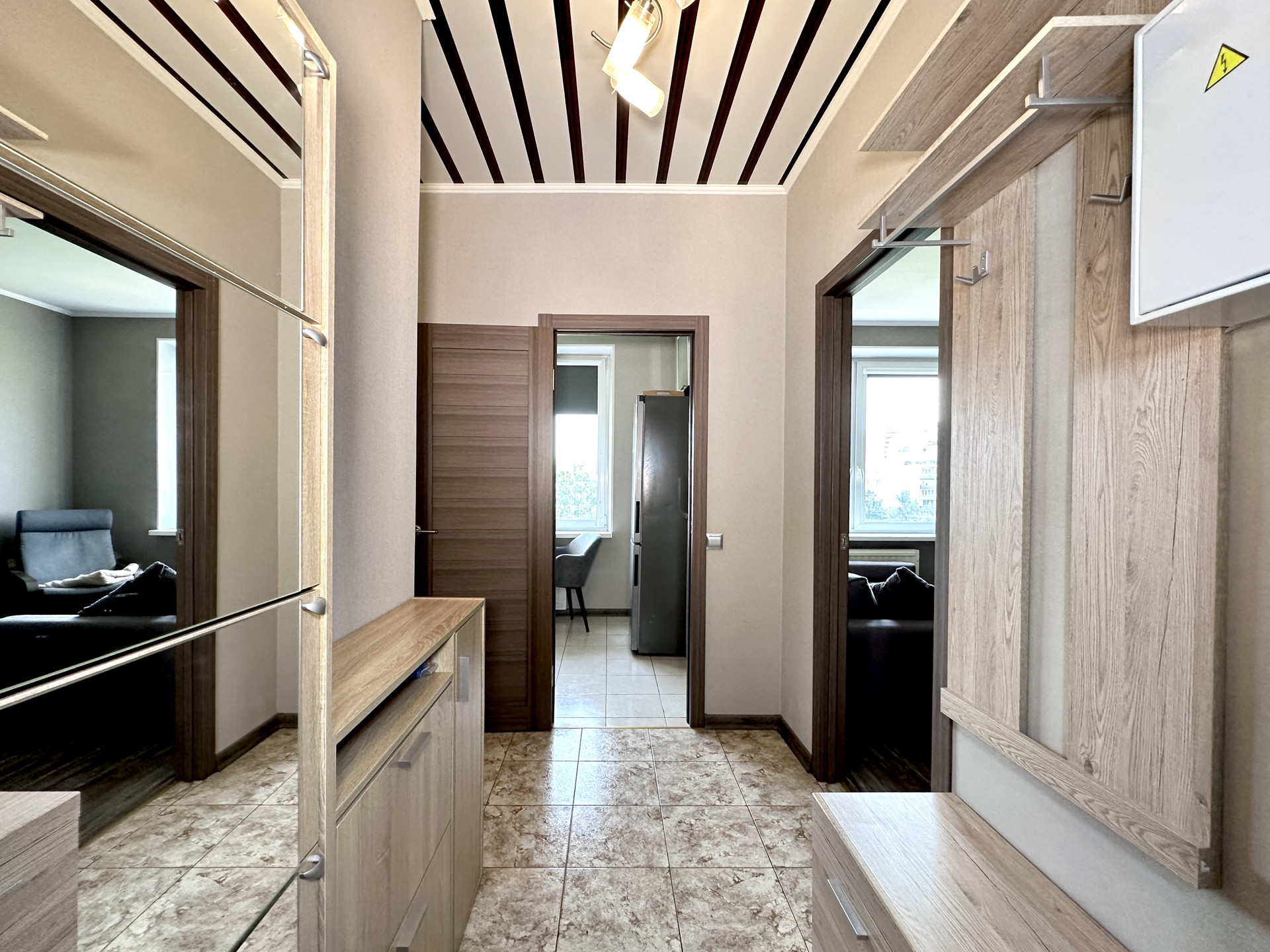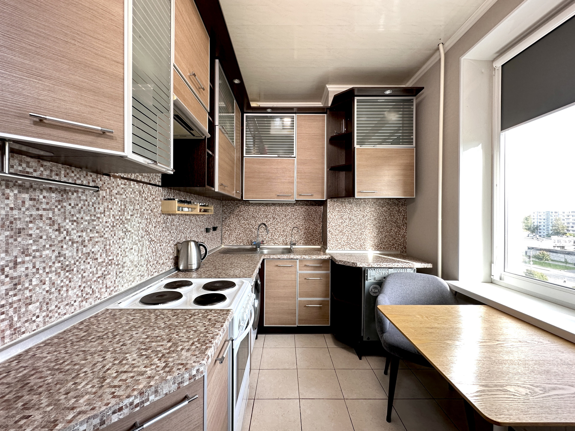 ОТДЕЛКА: Сделан косметических ремонт: моющиеся обои во всей квартире в пастельных нейтральных тонах, заменены двери во всех комнатах, новый ламинат в гостиной.Санузел раздельный. Рулонные блэкаут шторы на всех окнах. На кухне и в коридоре плитка с теплым электрическим полом с отдельными регуляторами для каждой комнаты.