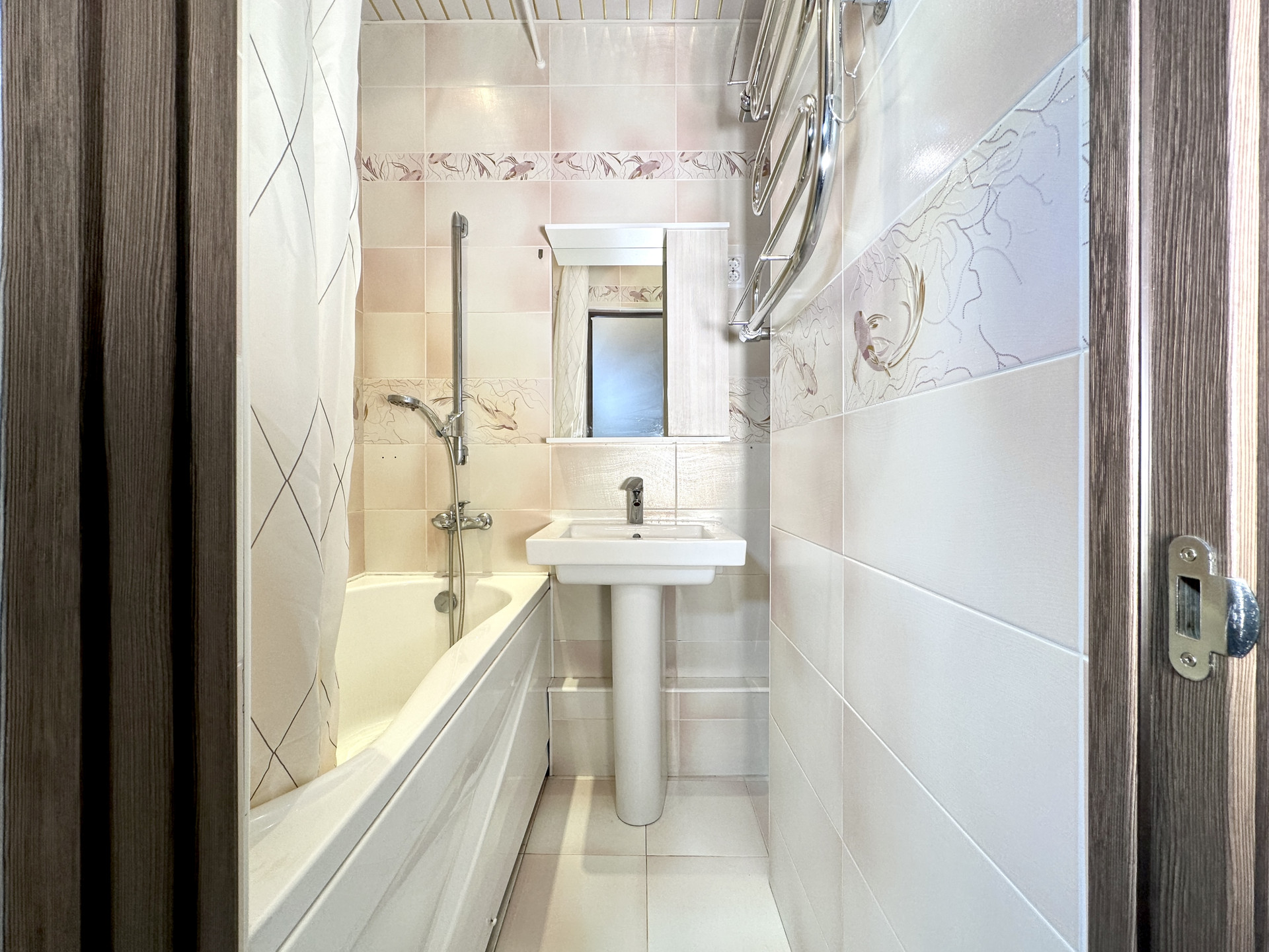- зеркало с полками в ванной.