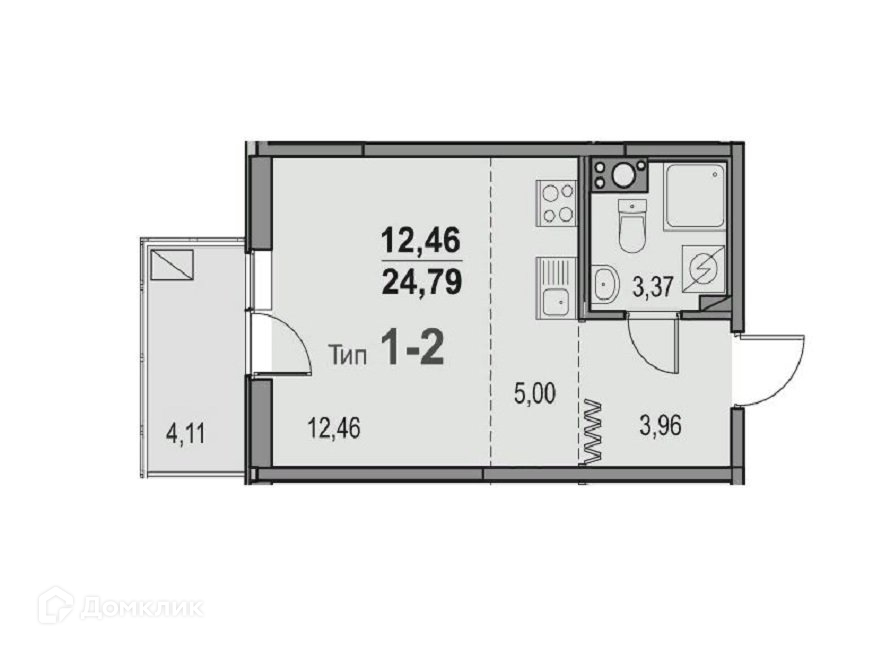 Общая площадь 24.9 м2