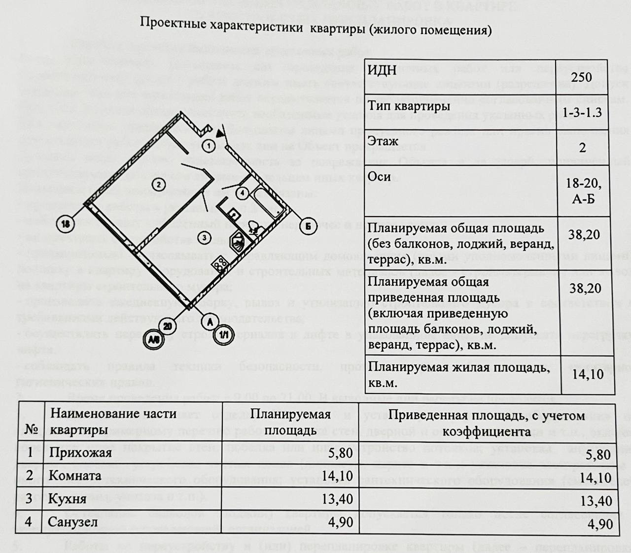 Общая площадь 38.5 м2