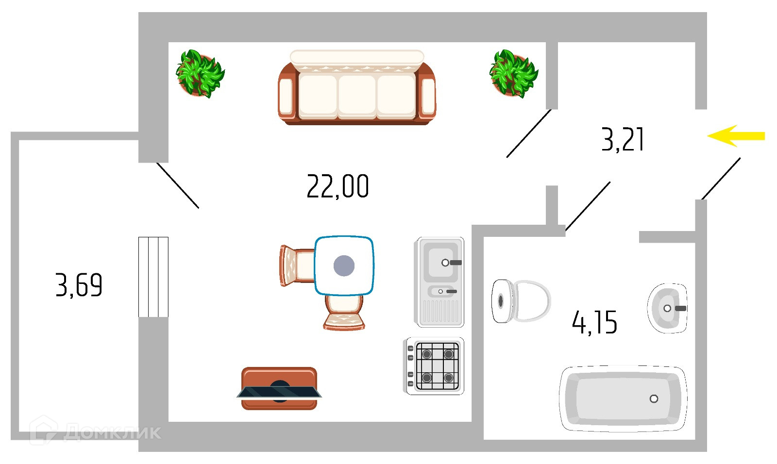 Общая площадь 21.9 м2