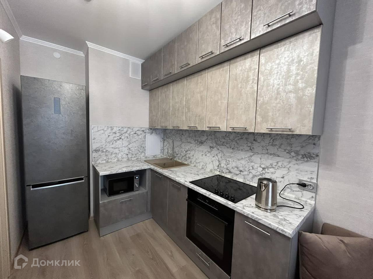 Продается светлая и солнечная квартира в живописном районе города. Окна выходят на детский сад, что создает приятную атмосферу и уютный вид. Общая площадь квартиры составляет 34.2 квадратных метра, включая жилую площадь в размере 16.6 квадратных метров и кухню площадью 10.1 квадратных метров. Внутри квартиры установлена паркетная доска на полу и натяжные потолки, добавляющие стиль и комфорт.