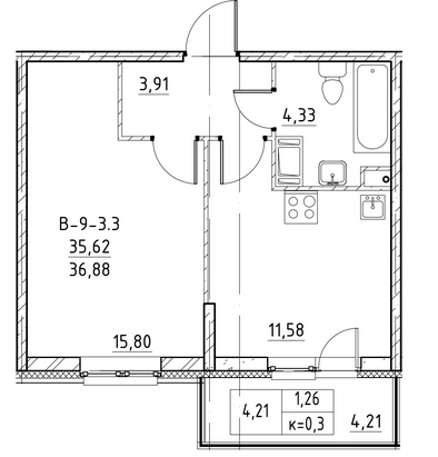 Общая площадь 36.88 м2