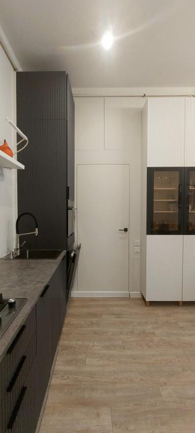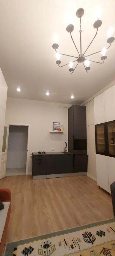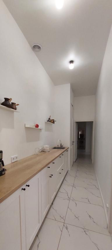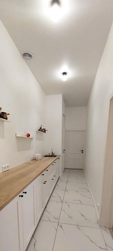 Квартира свободно делиться на две – двухкомнатная и евротрешка. Закрыли дверь на ключ и это два отдельных помещения с кухнями и санузлами. Первый этаж нежилой (Косметический салон). Решается вопрос о ремонте черной лестницы.