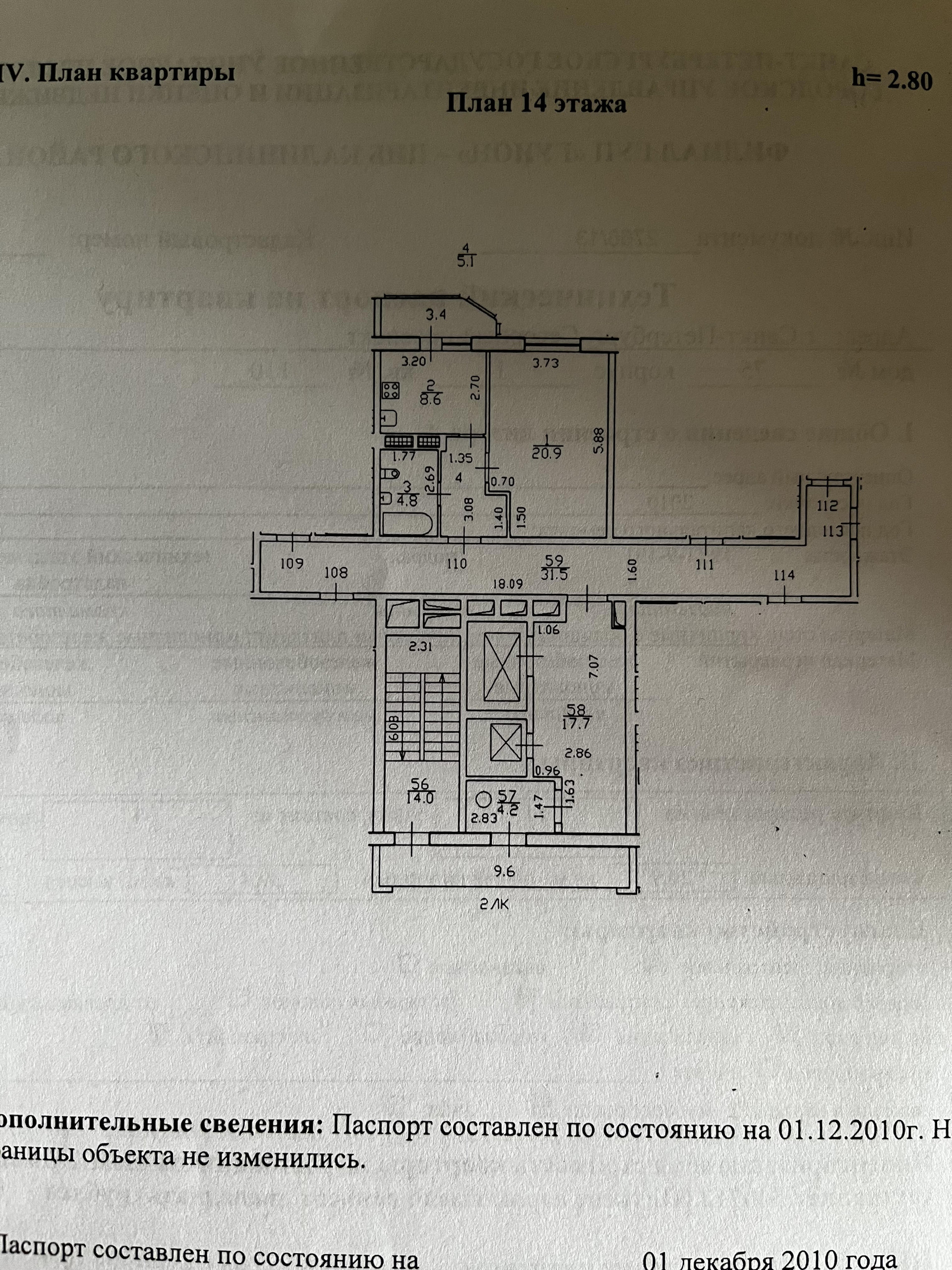 Высота потолков 2.8 м