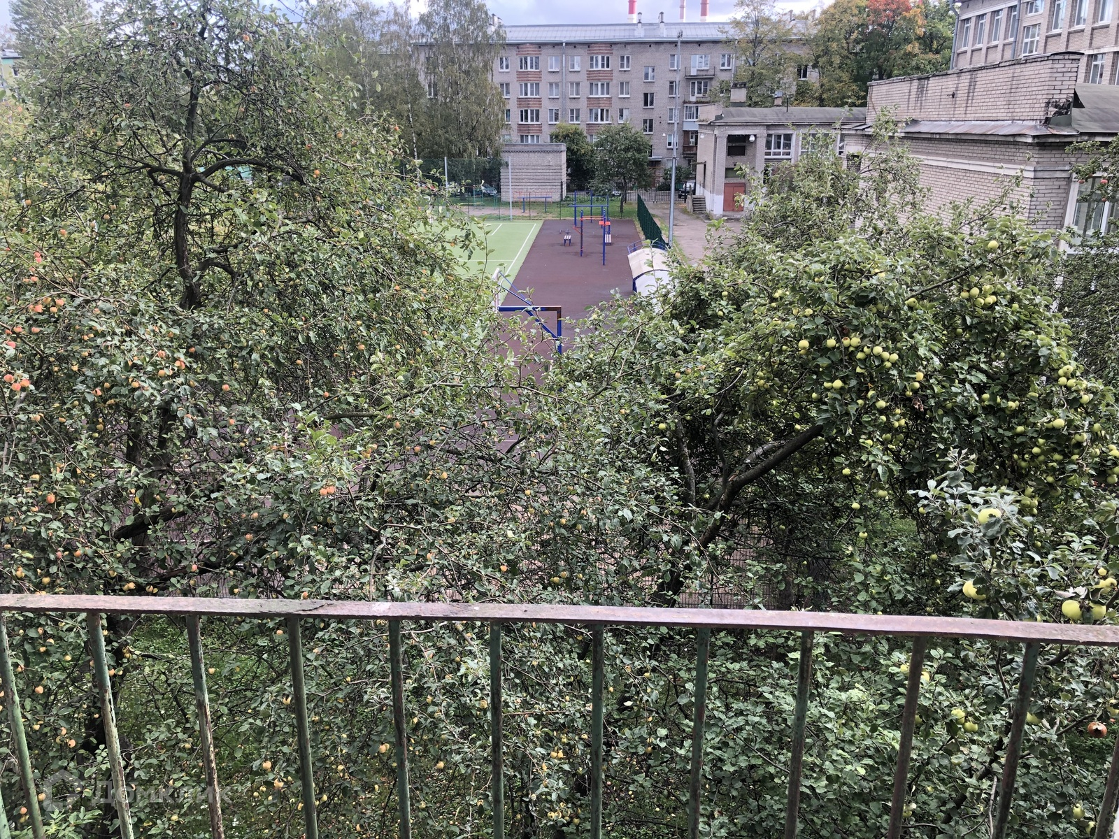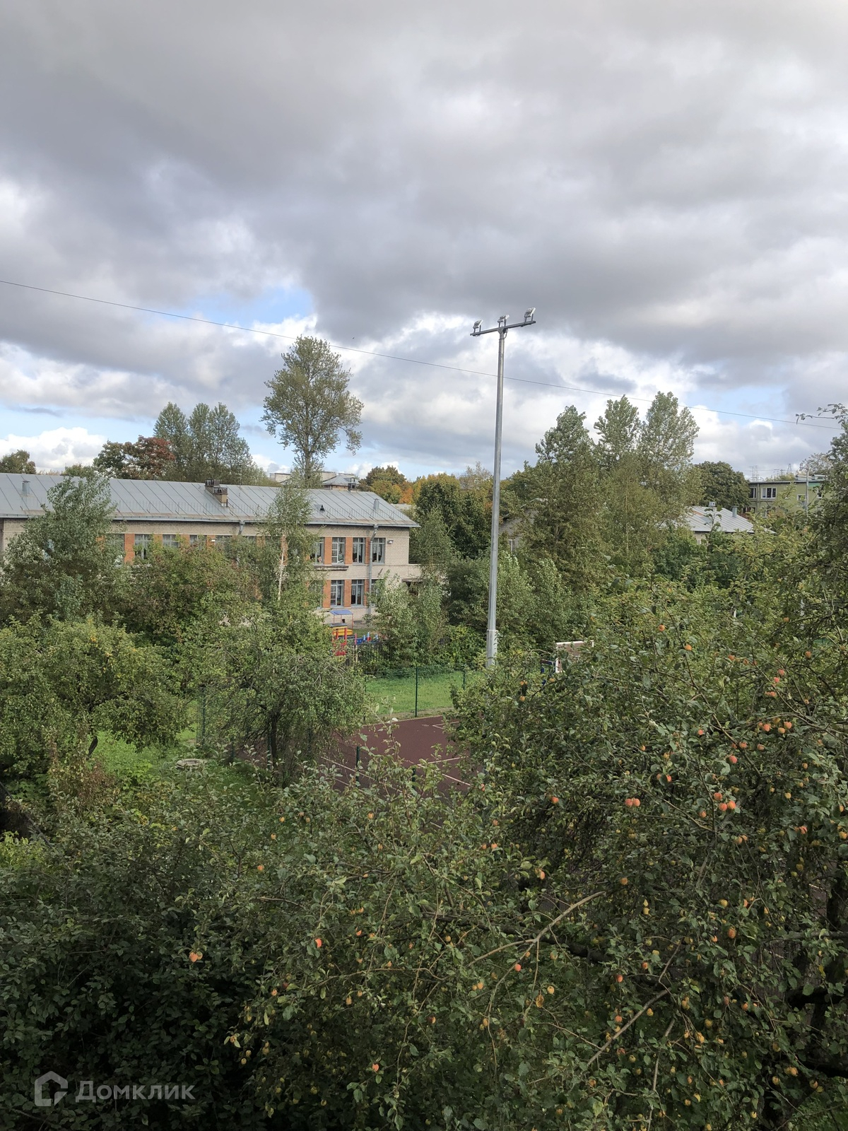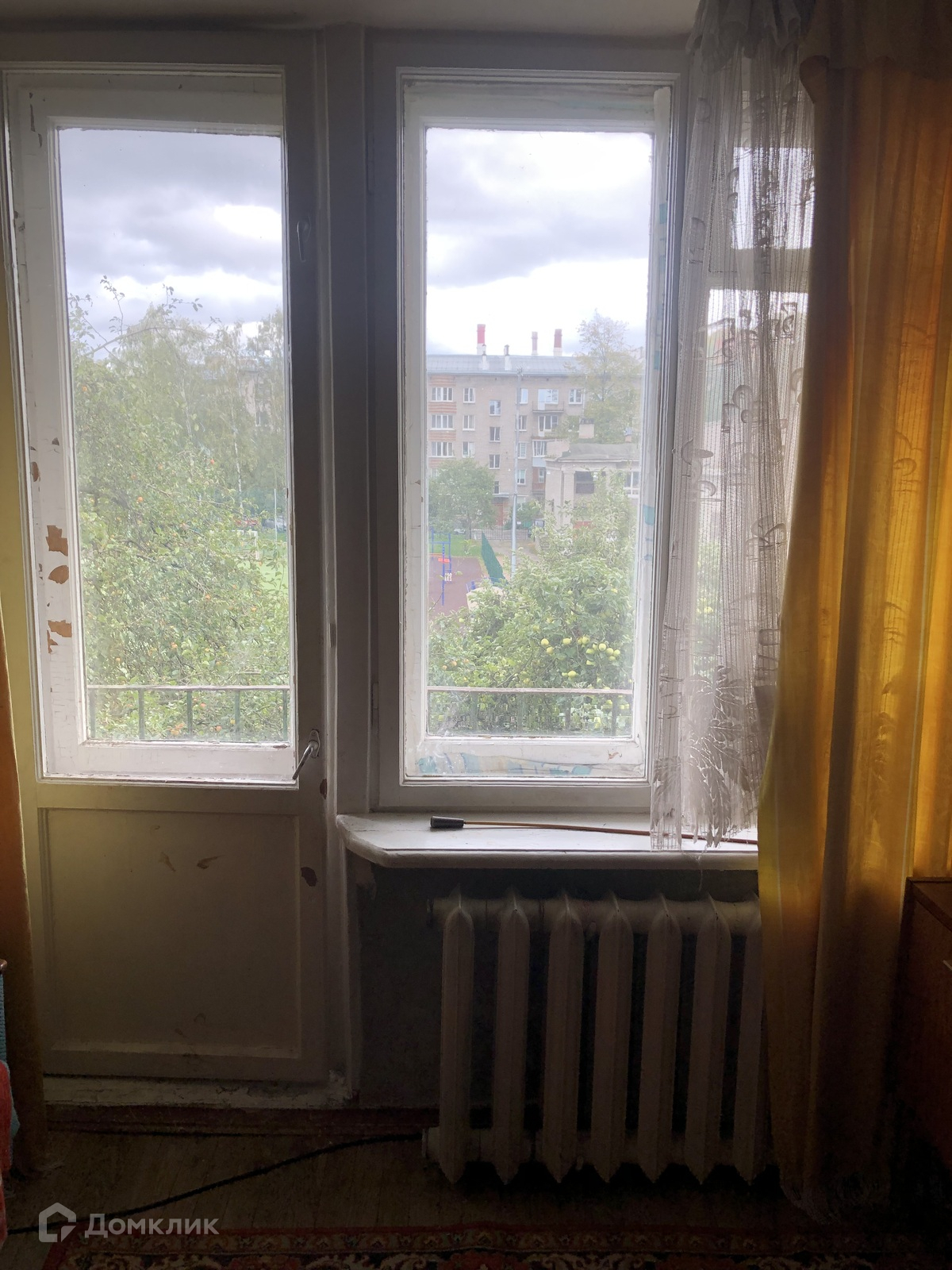 Квартира односторонняя, ориентация окон юго-восток; окна смотрят на яблоневый сад и школьный двор.