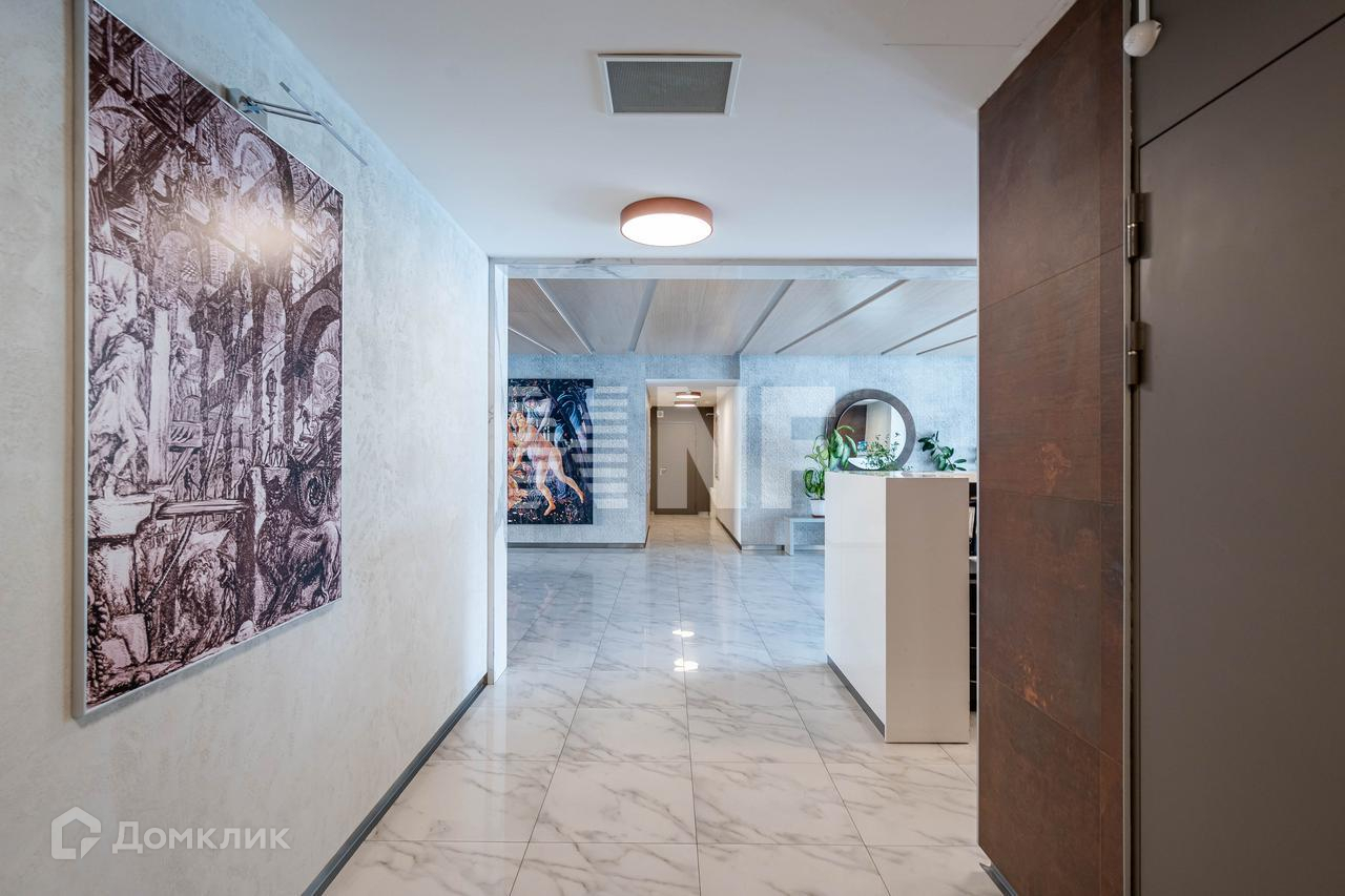 Квартира находится на 8 этаже, на который можно подняться на бесшумном лифте из паркинга. На этаже всего две квартиры, что обеспечивает максимальную приватность и комфорт для жильцов.