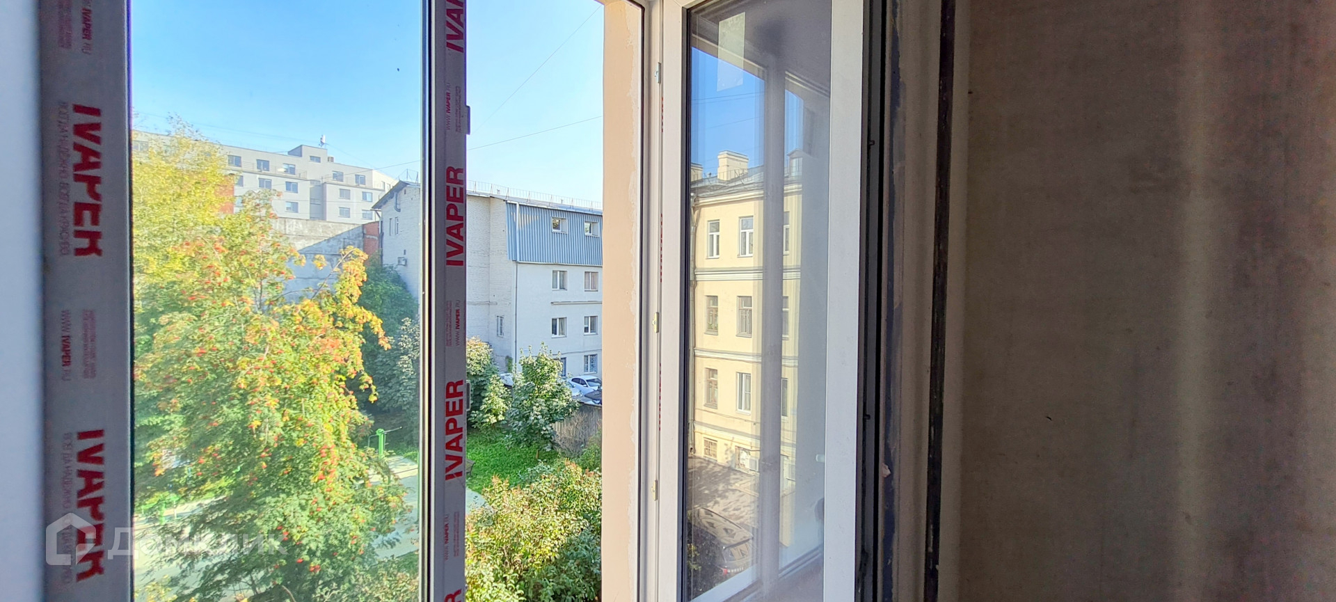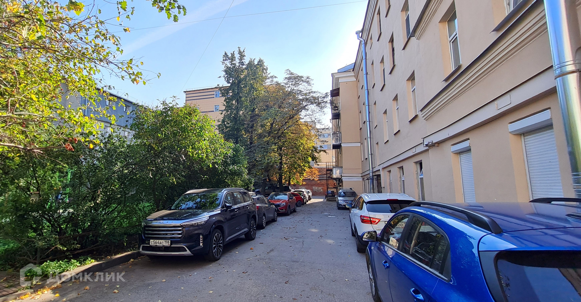 Окна выходят в просторный уютный Петербургский двор с детской площадкой и тренажерами. В зеленом дворе перед окнами сирень, рябина, бузина, каштаны. Много мест для парковки.