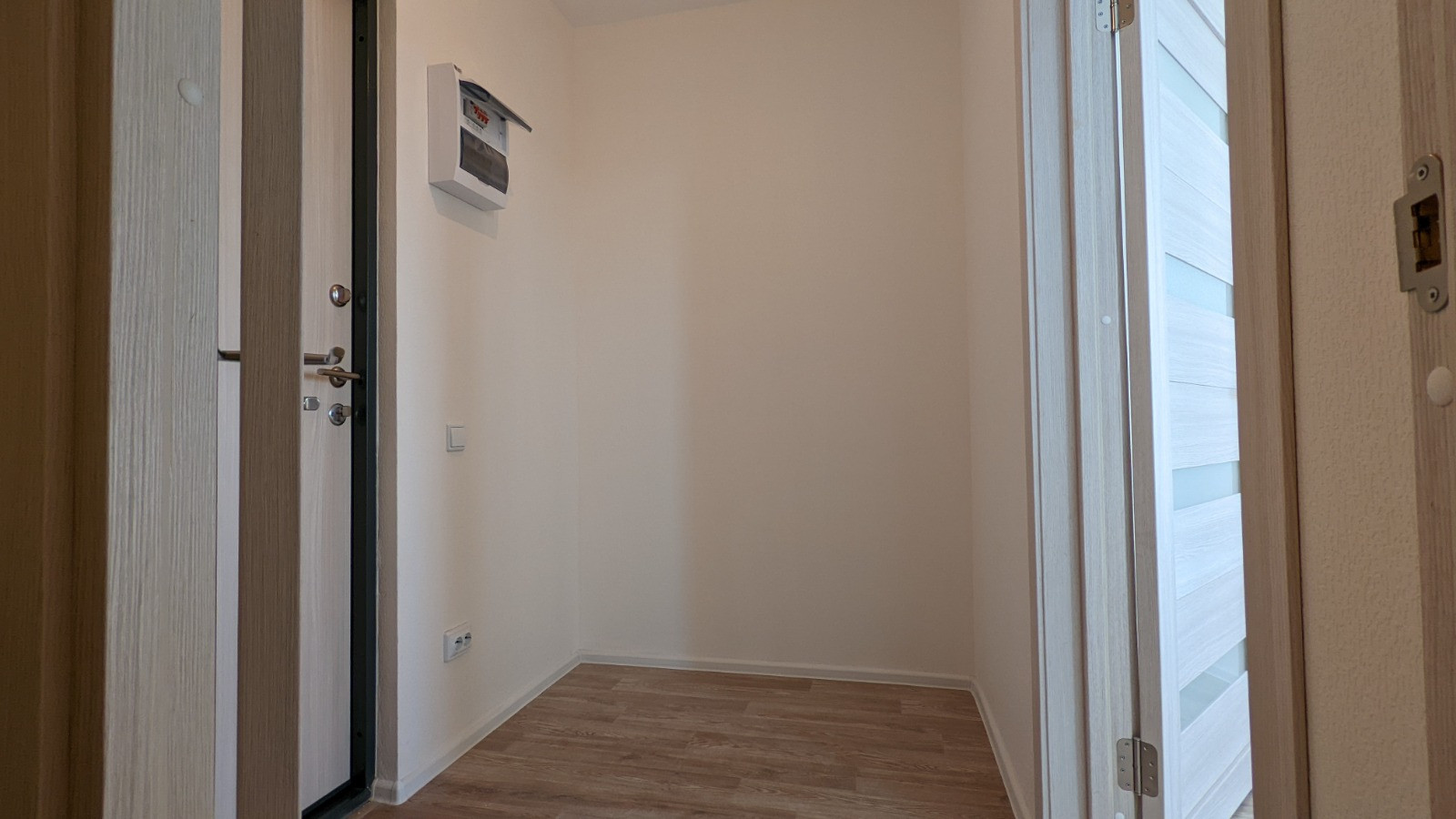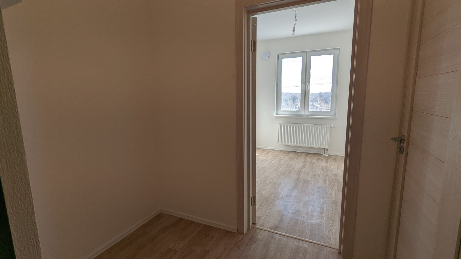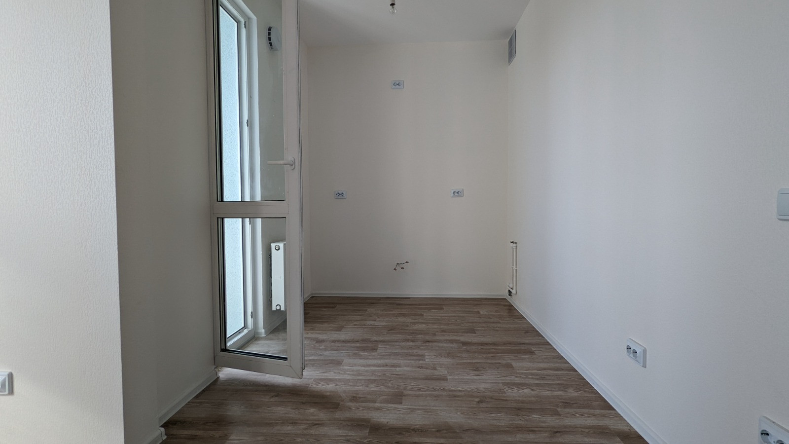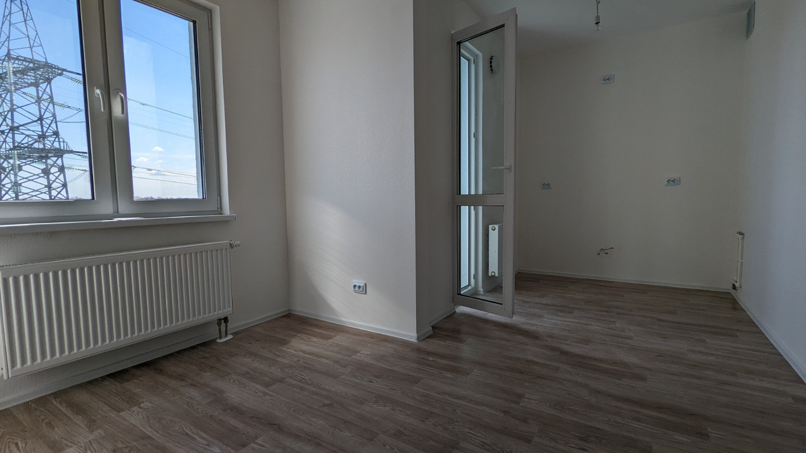 Зонированная компактная планировка, широкая, не пенальная. Две световые точки. Вместительная гардеробная ниша. Если любите изолированные помещения, то можно с легкостью сделать перегородку. Отделка выполнена в белых тонах, в квартире много света. На полу в комнате, кухне и прихожей - ламинат. Санузел смежный. Отопление в квартире регулируется, что разрешает настроить для себя комфортную температуру и сэкономить на отоплении. Окна выходят на улицу, на восток. Лоджия 2,6м2. Небольшой коридор, пять квартир в крыле.