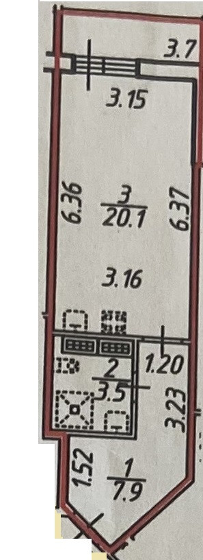 Жилая площадь 20 кв.м, кухня 5 кв.м, внутри евро ремонт. Квартира меблированная, совмещенных санузлов - 1.