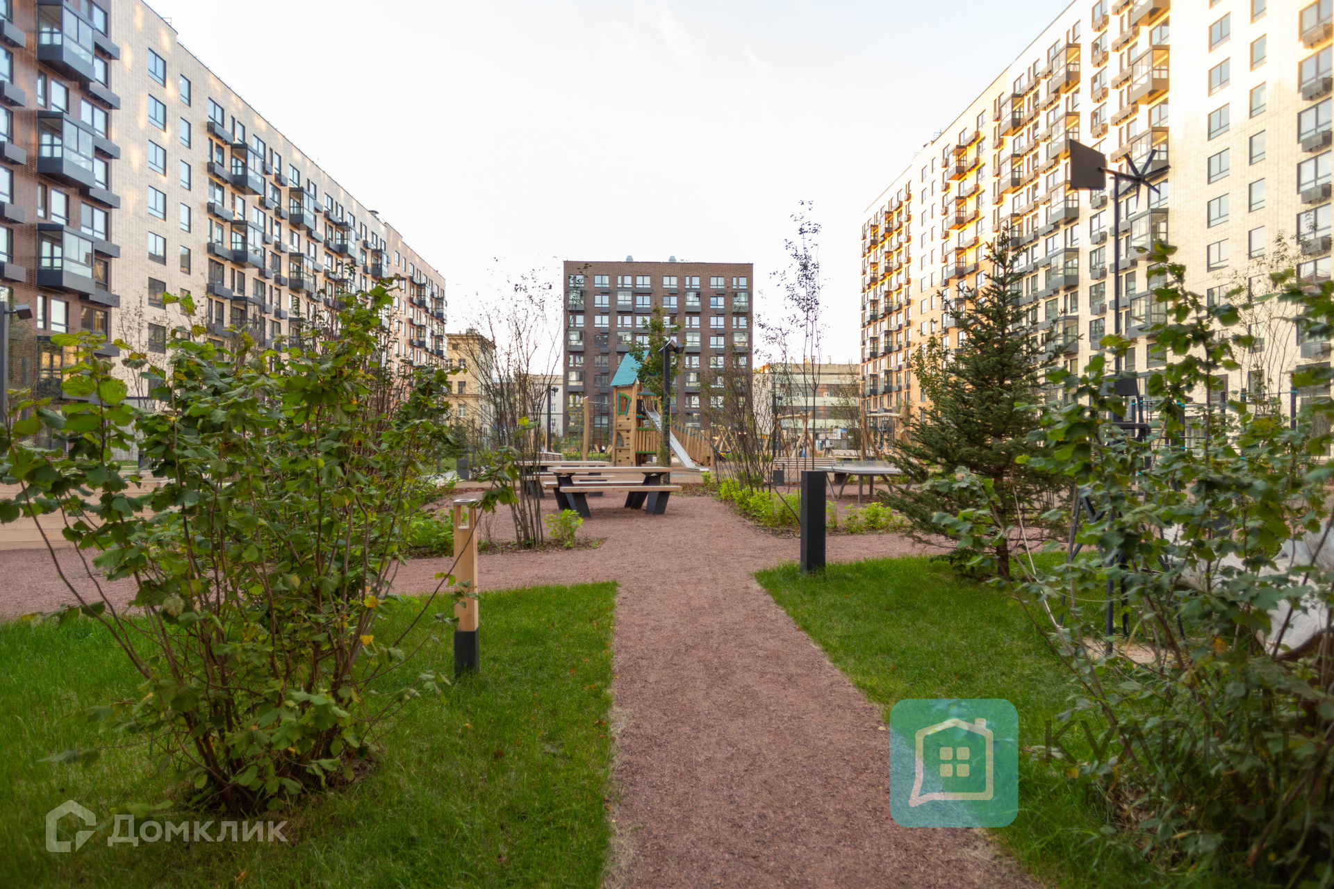 Во дворах-парках, свободных от автомобилей, благоустроены места для прогулок, отдыха и детских игр.