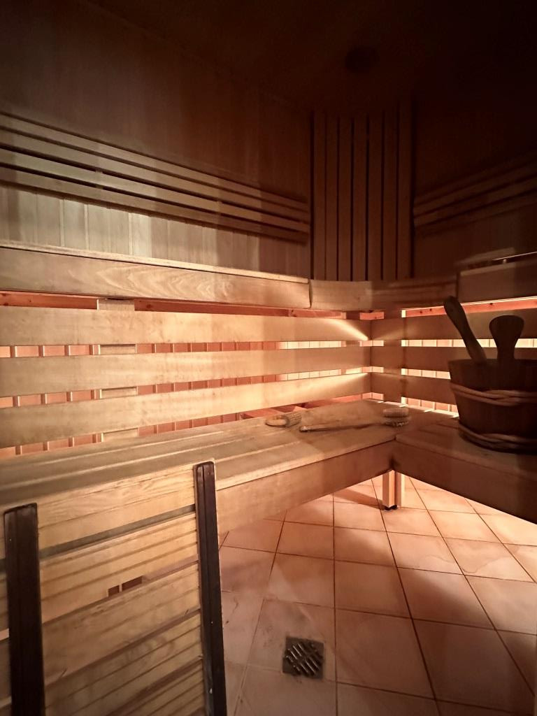 Главная ванная комната очень просторная 29,5 м2 с джакузи и сауной, второй санузел совмещенный, с душевой кабиной.